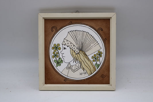 Handpainted KFK ceramic wall tile, designed by Aino Alamaa
