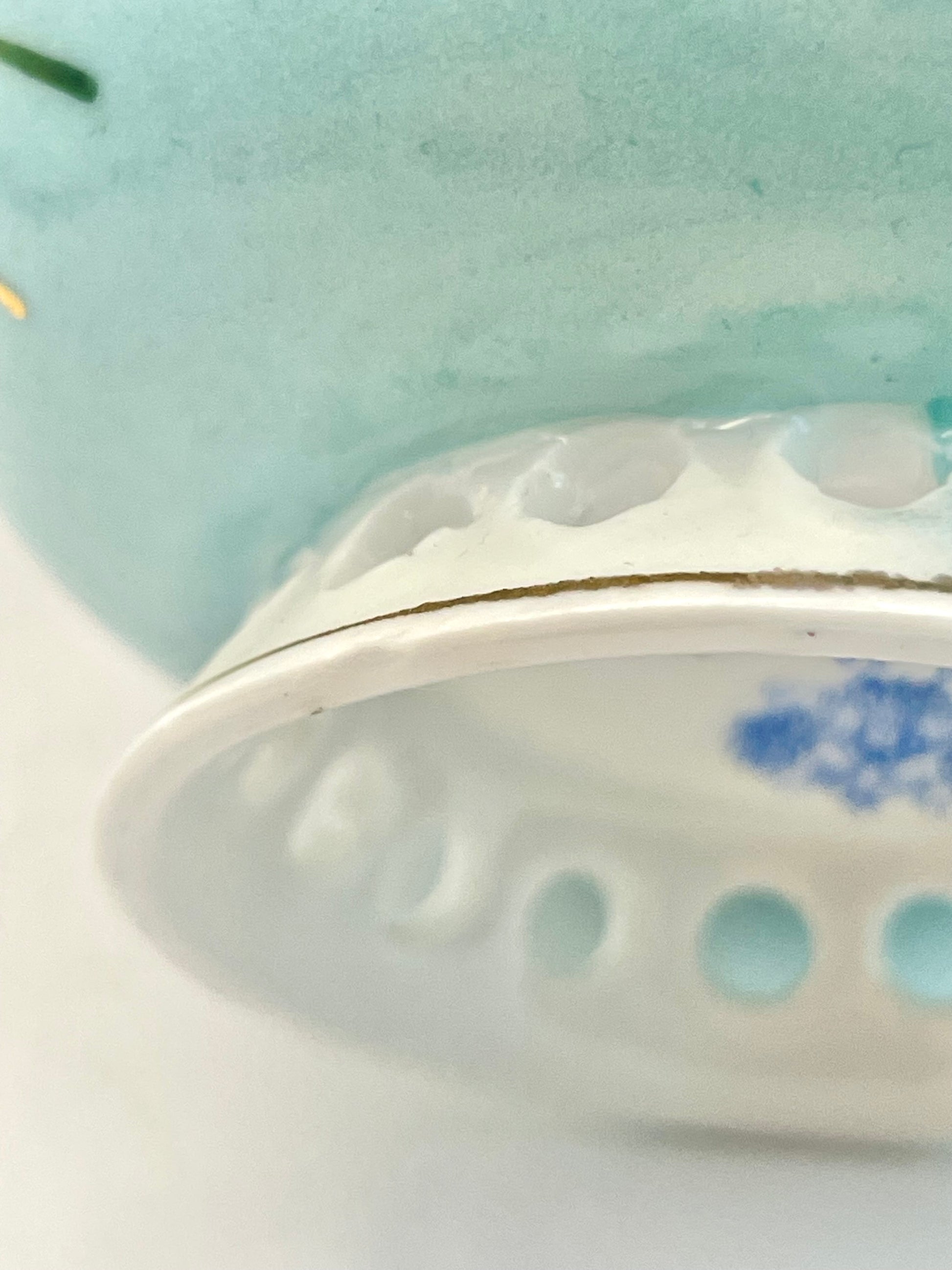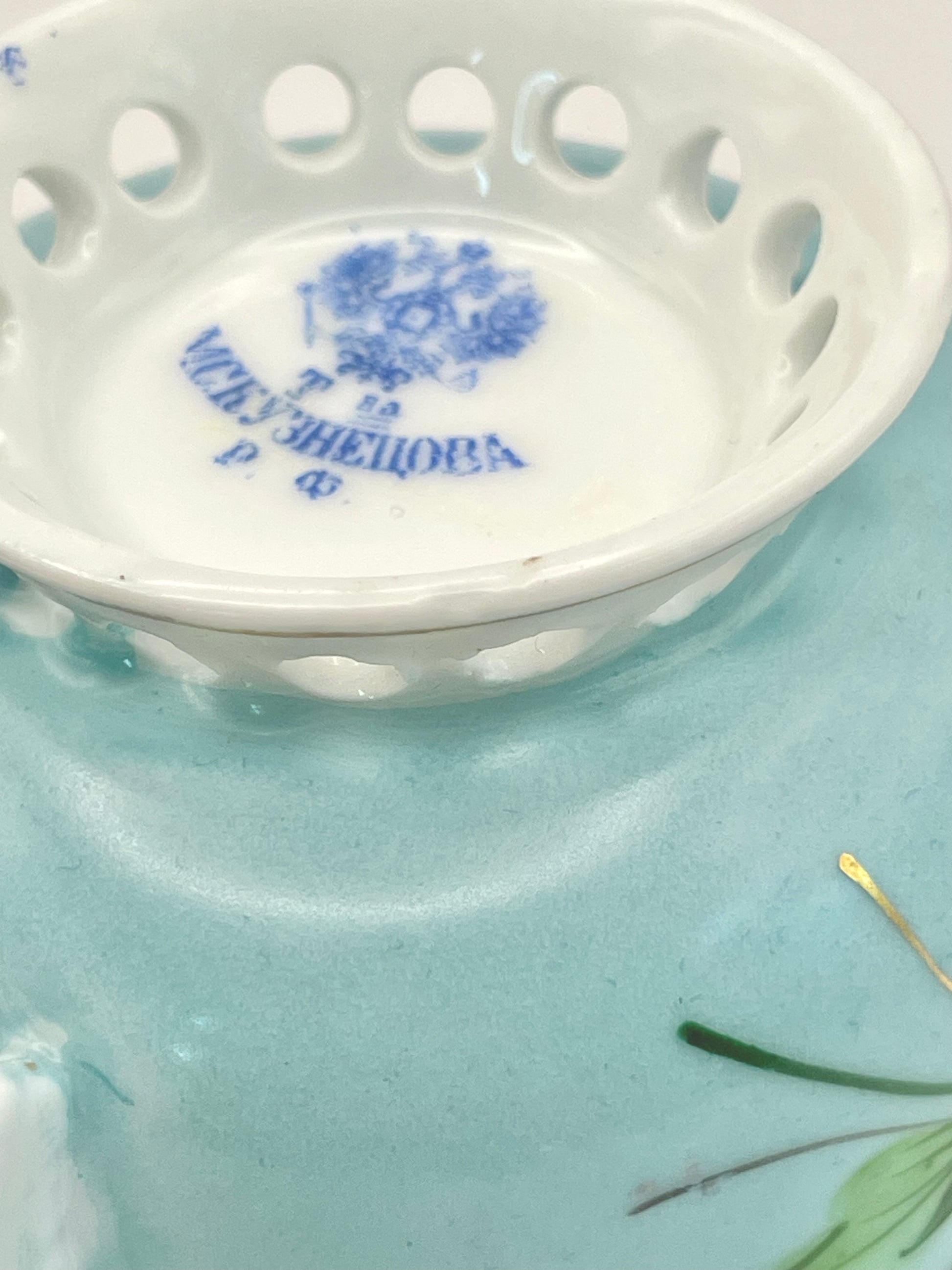 Hand-painted lace-footed porcelain tea cup produced by Kuznetsov