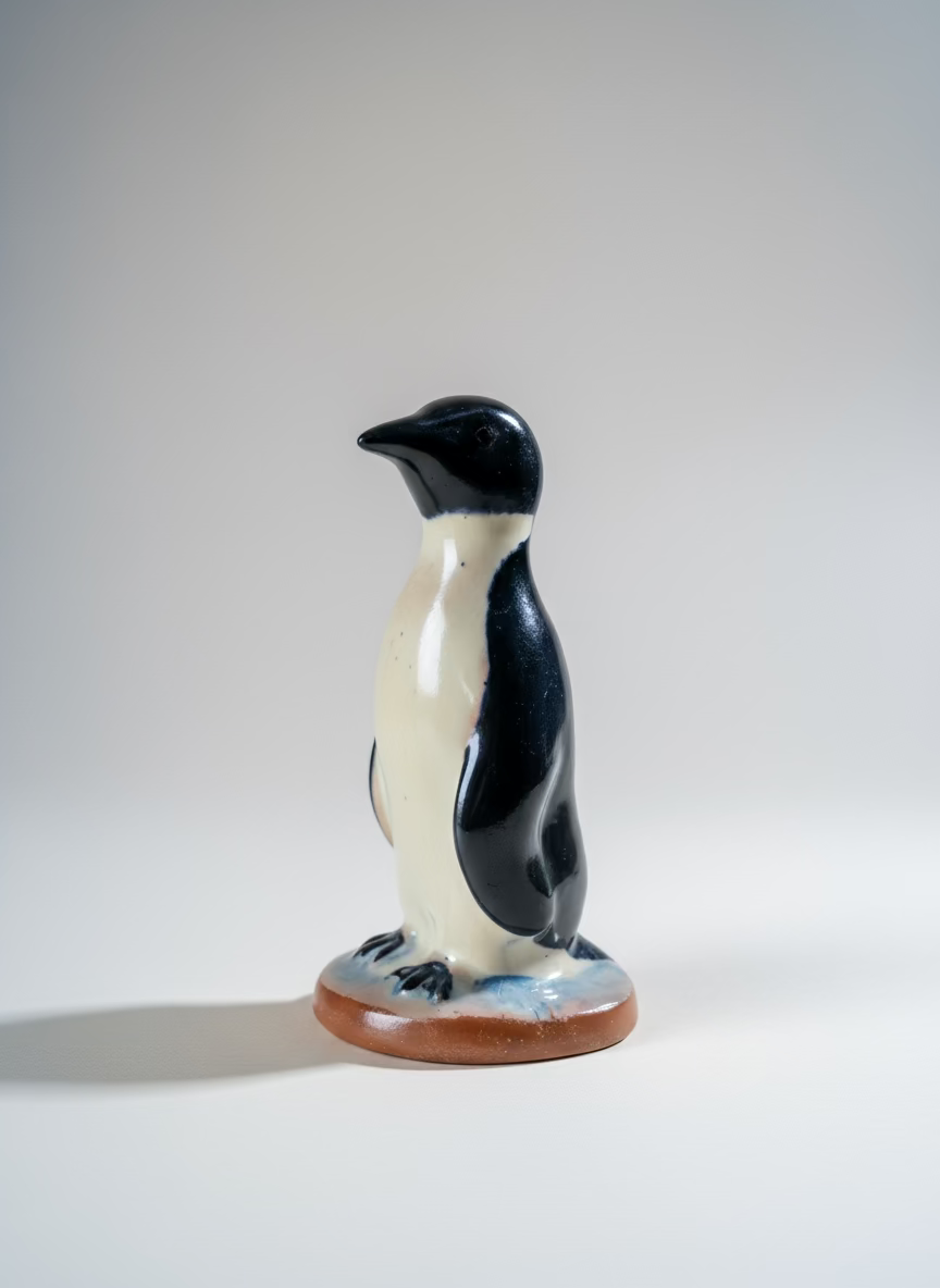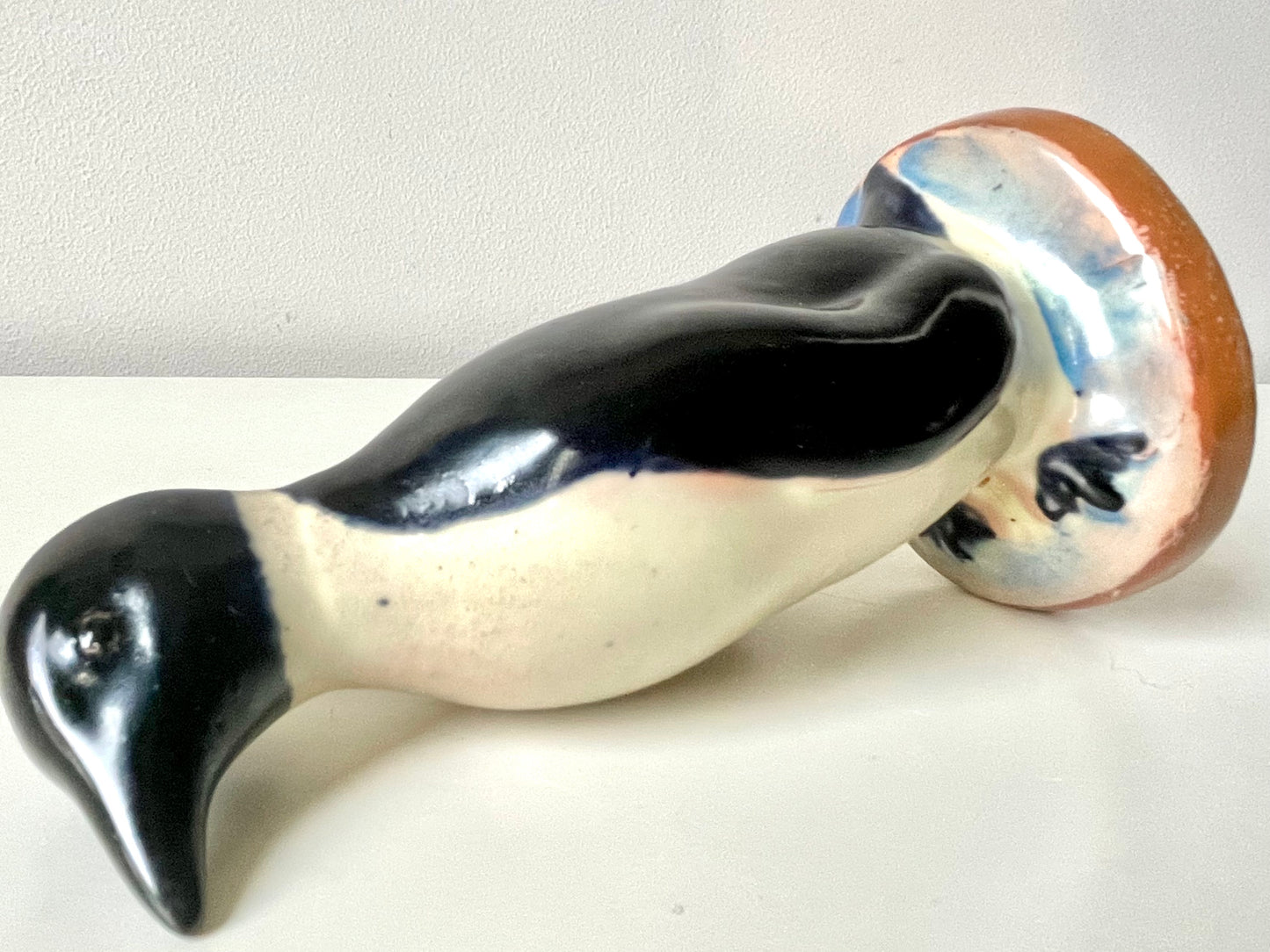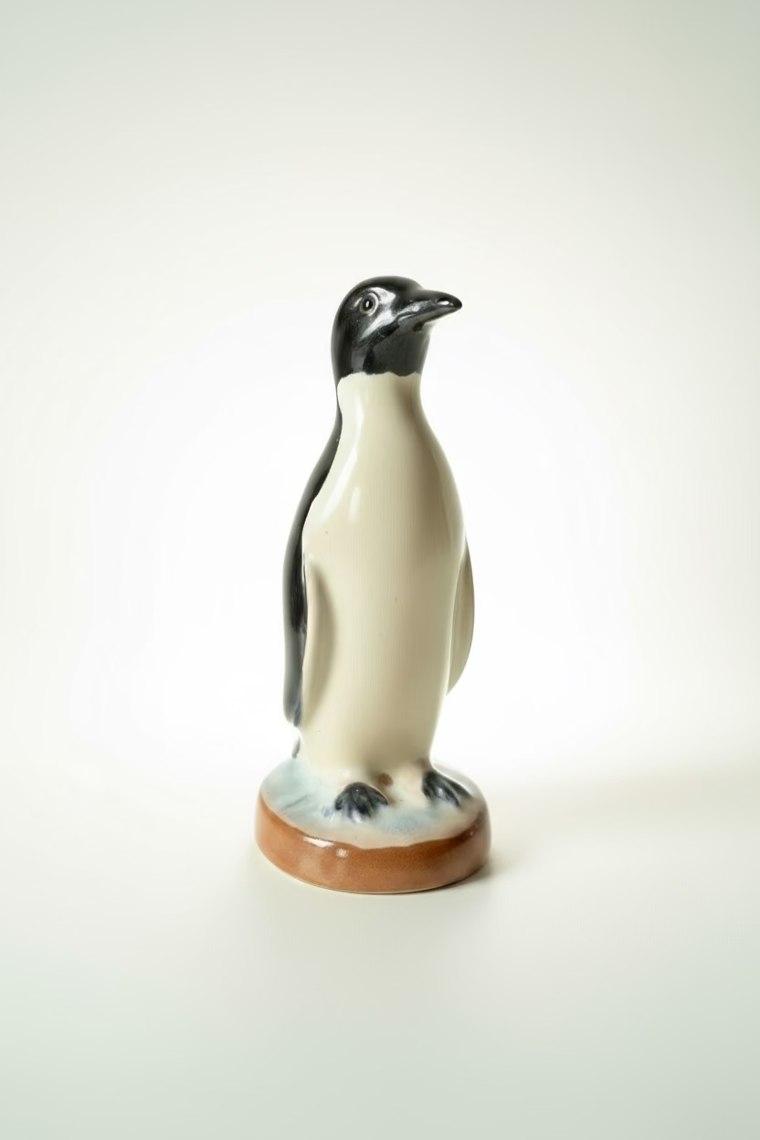 Did you know that this delightful ceramic penguin figurine, crafted in the vibrant city of Riga (Latvia) during the 1940s, embodies the whimsical spirit of the Art Deco movement?