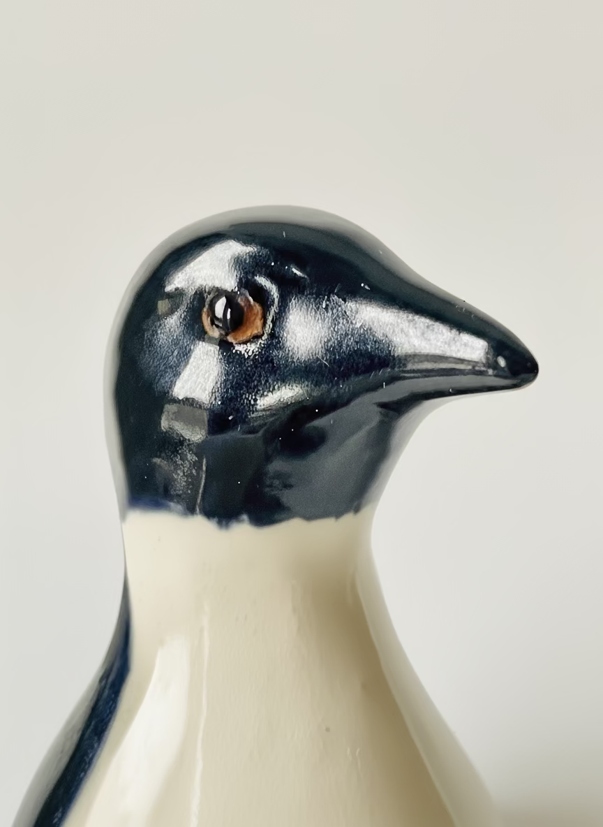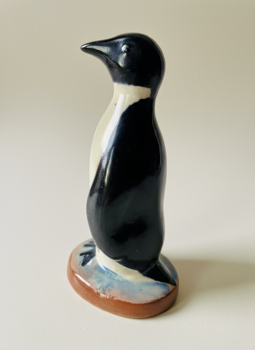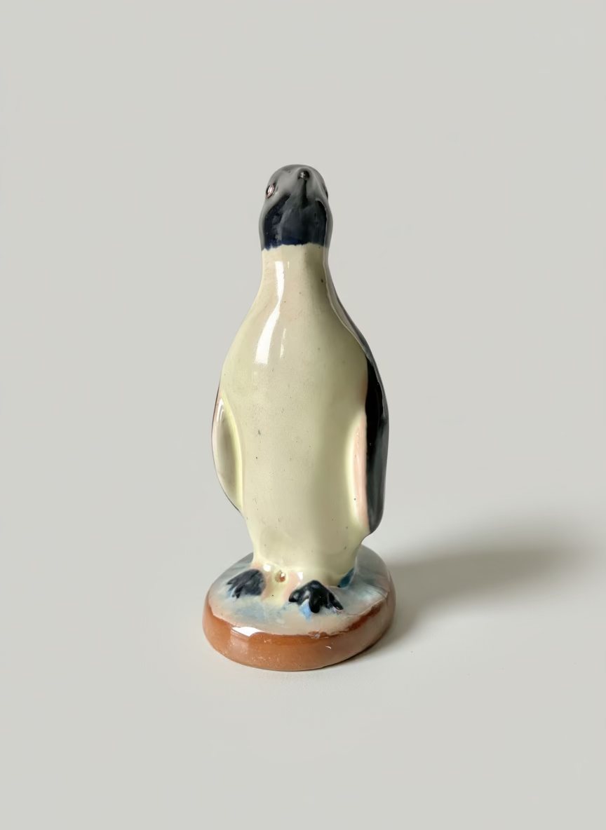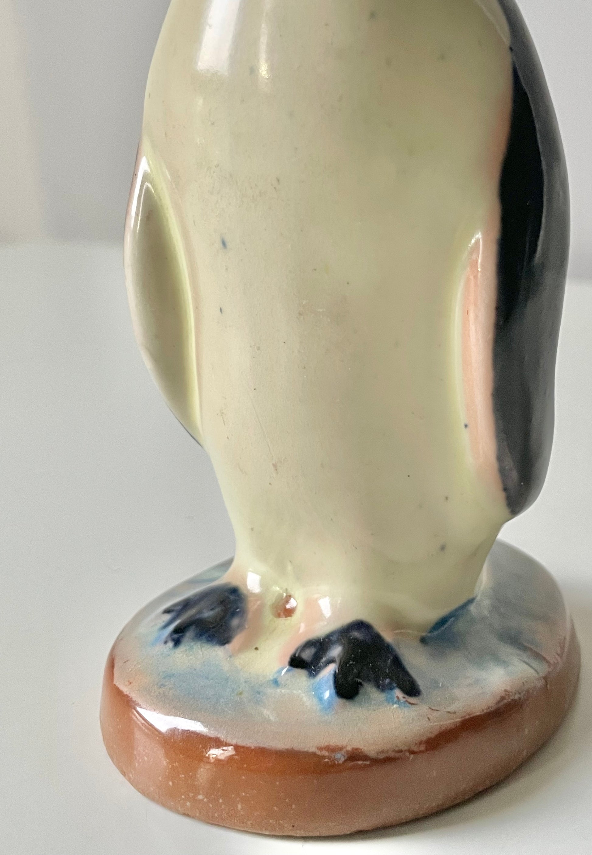 Did you know that this delightful ceramic penguin figurine, crafted in the vibrant city of Riga (Latvia) during the 1940s, embodies the whimsical spirit of the Art Deco movement?