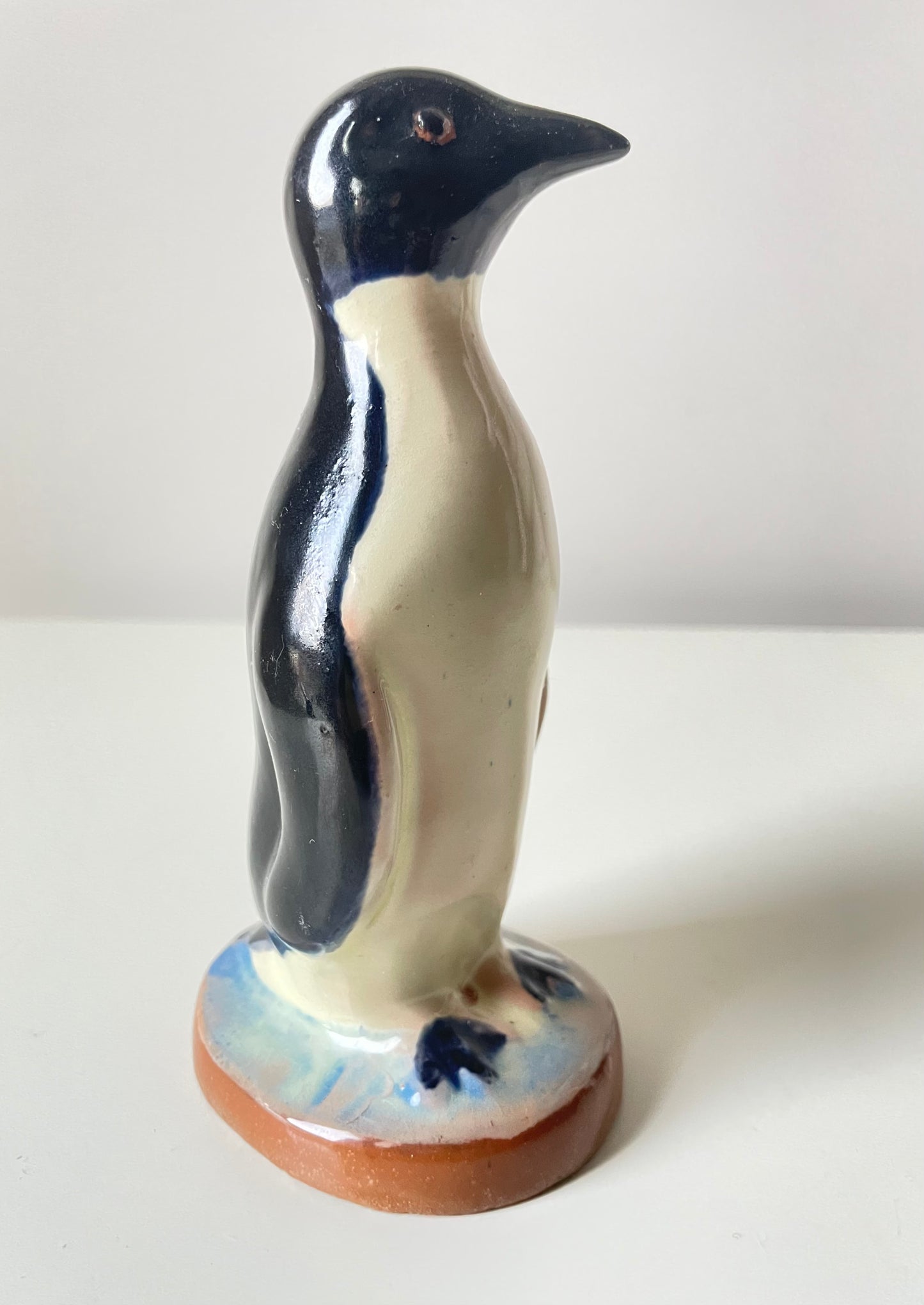 It is a charming ceramic penguin figurine, produced in Riga (Latvia), by the Riga Porcelain Factory in the 40s of the 20th century in the light Art Deco mood.