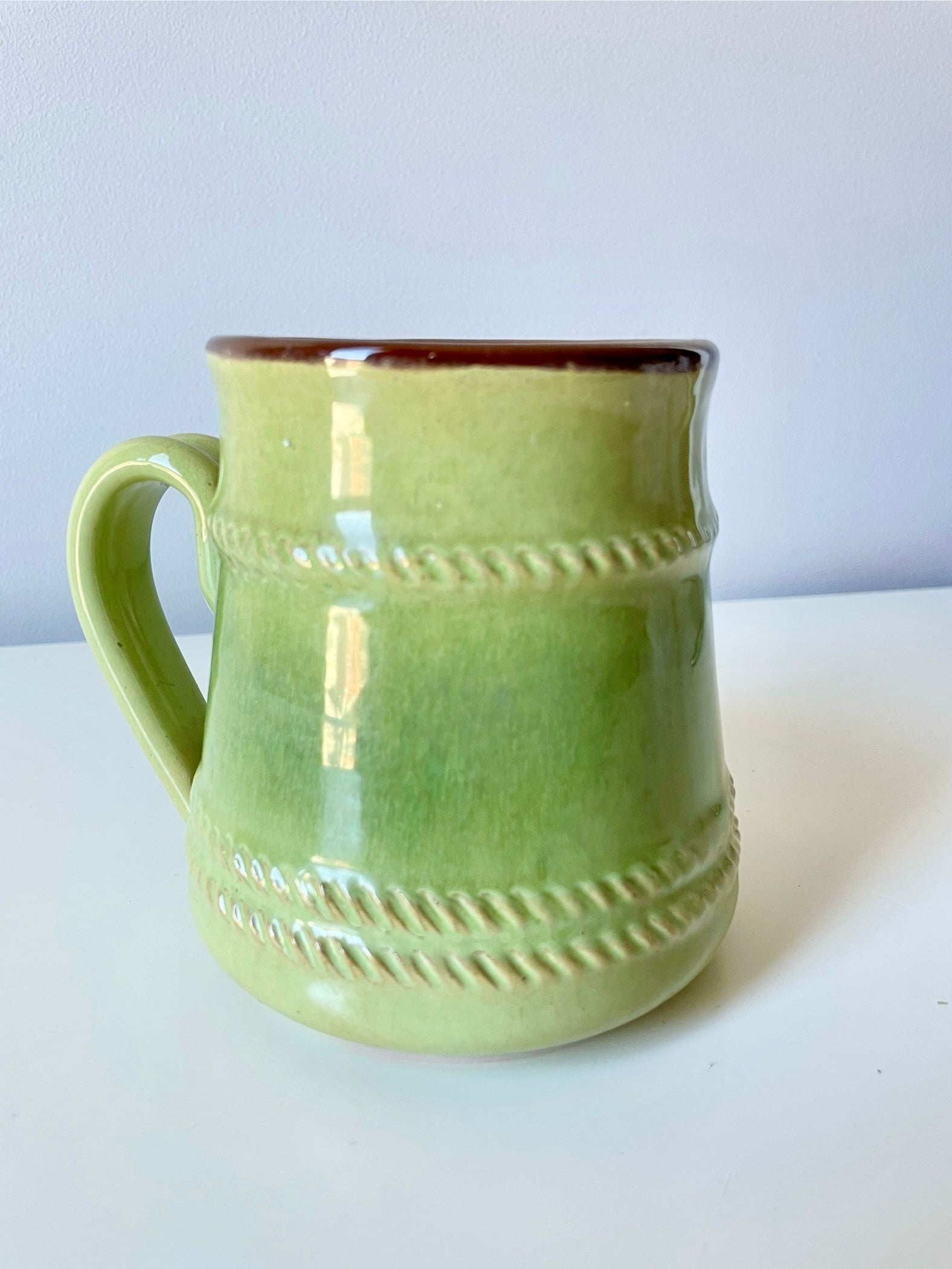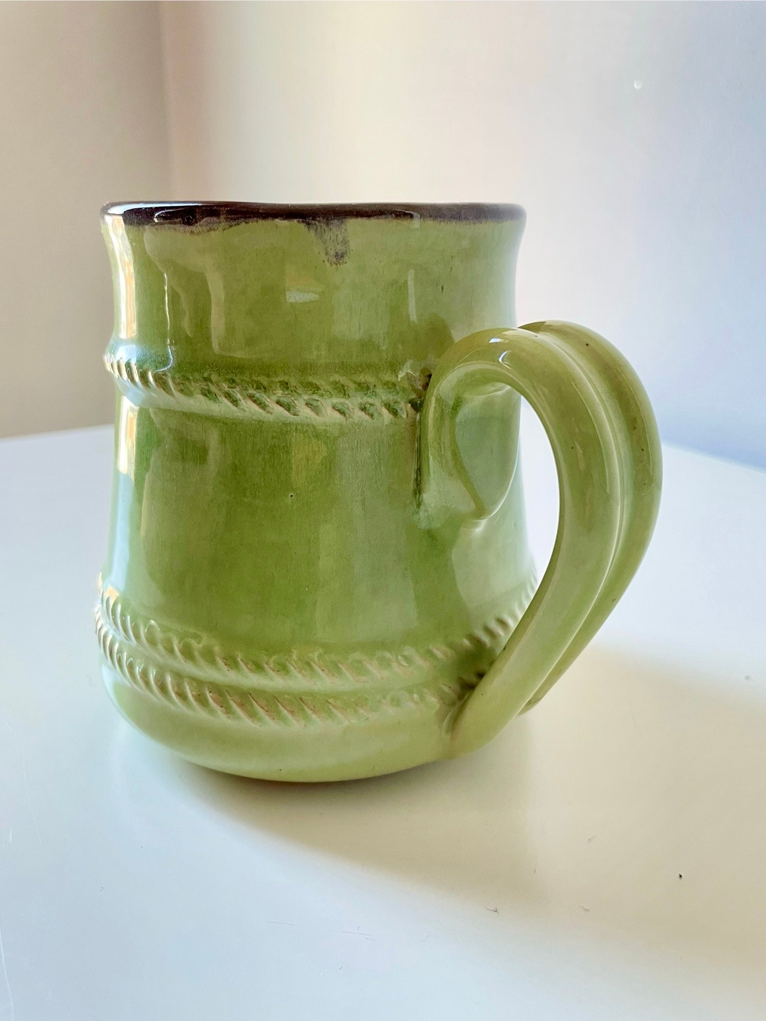Beautiful green beer mug for an egoist willing to feel cosy in the rustic terrase amidst the hot summer evening.
