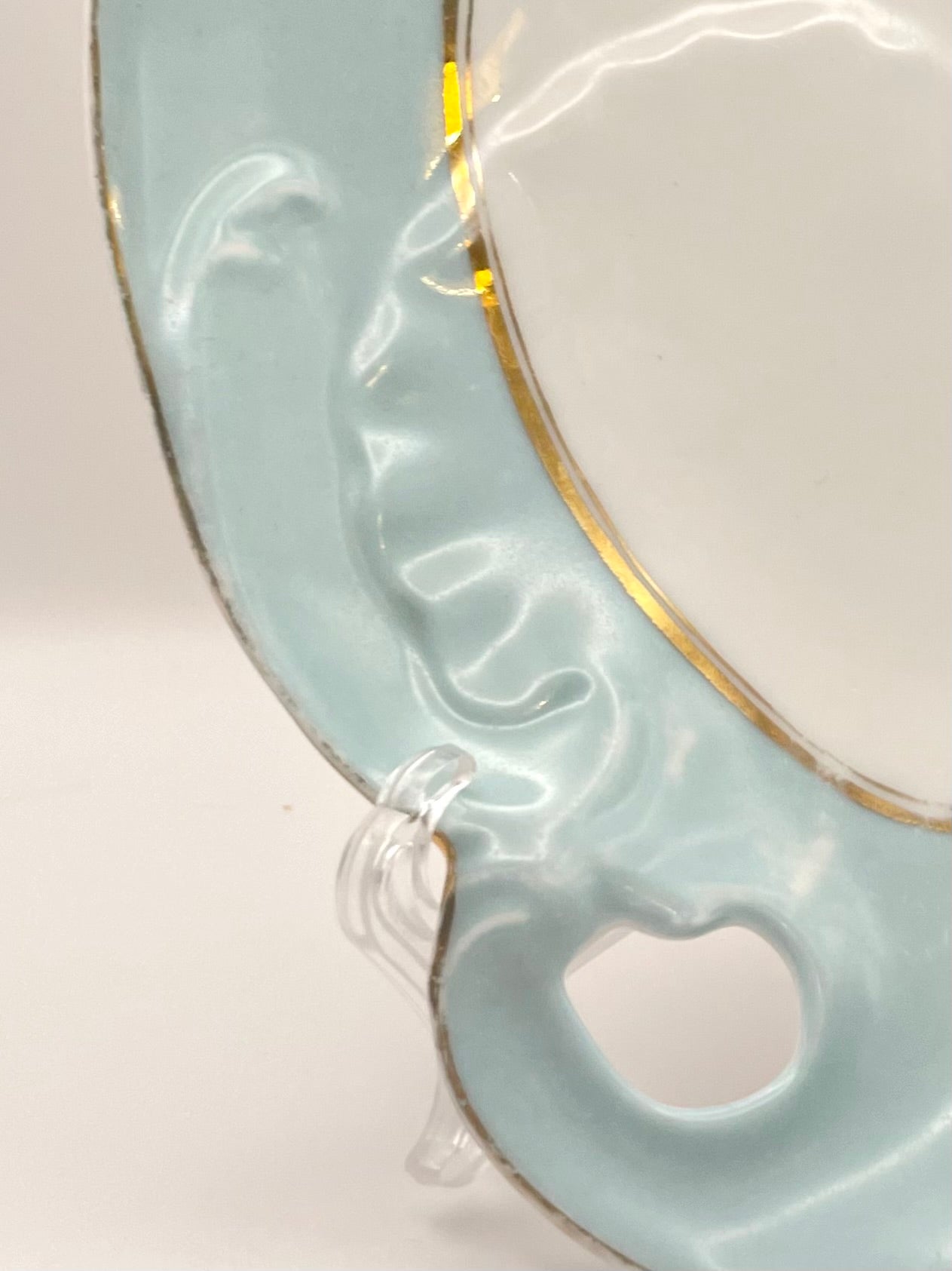 This serving plate is distinguished by the amazing colour of its glaze and the figural nuances. This all has stayed intact for more than 100 years and accumulated an extra charming colour wear.