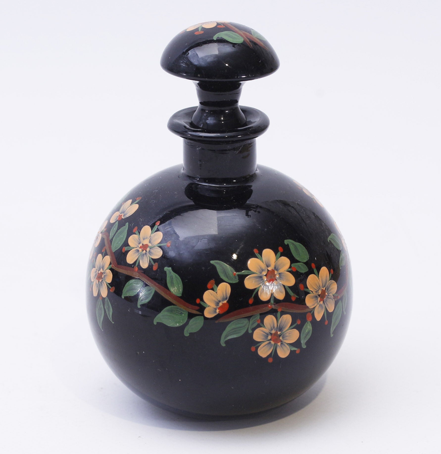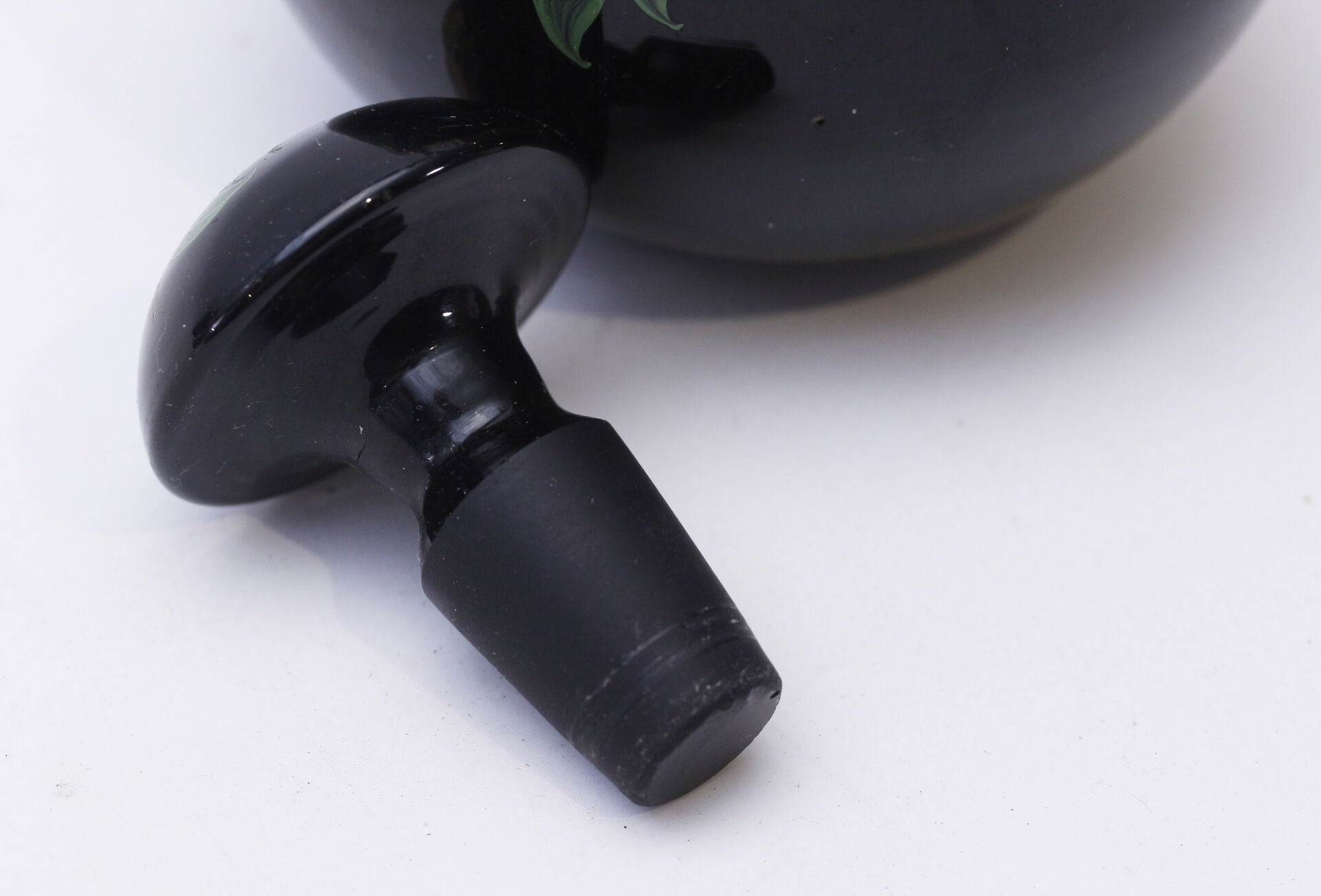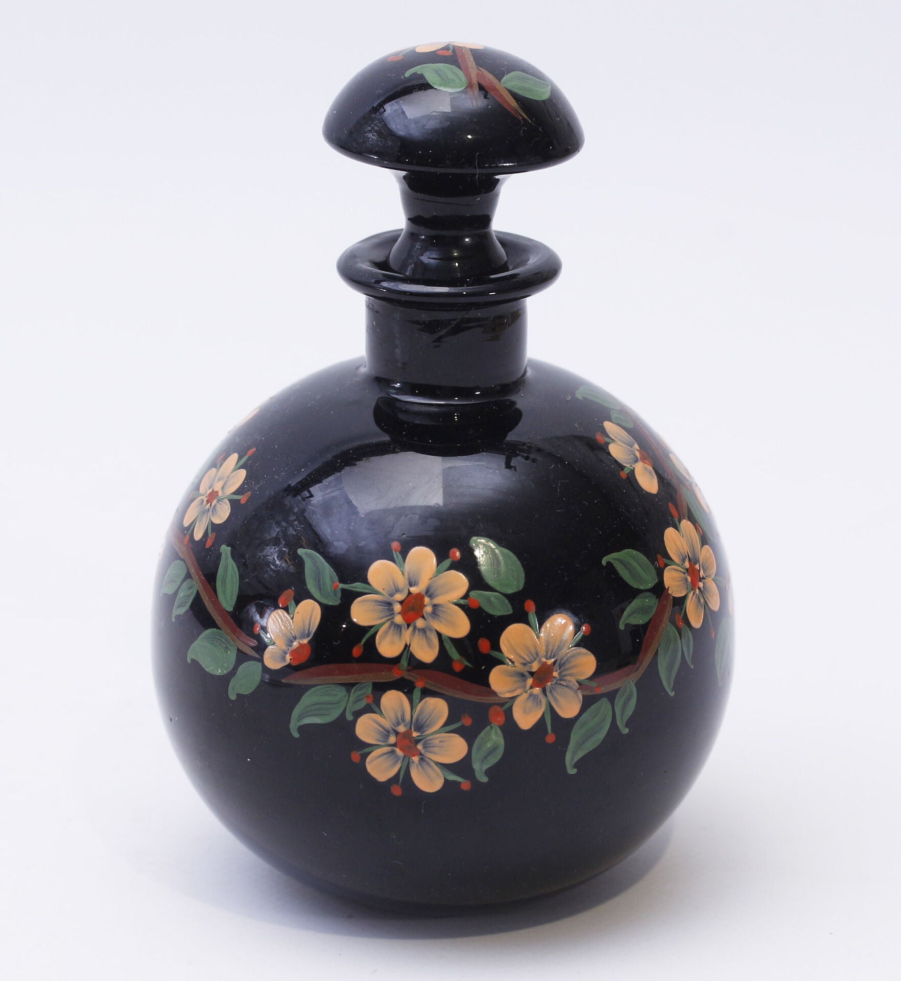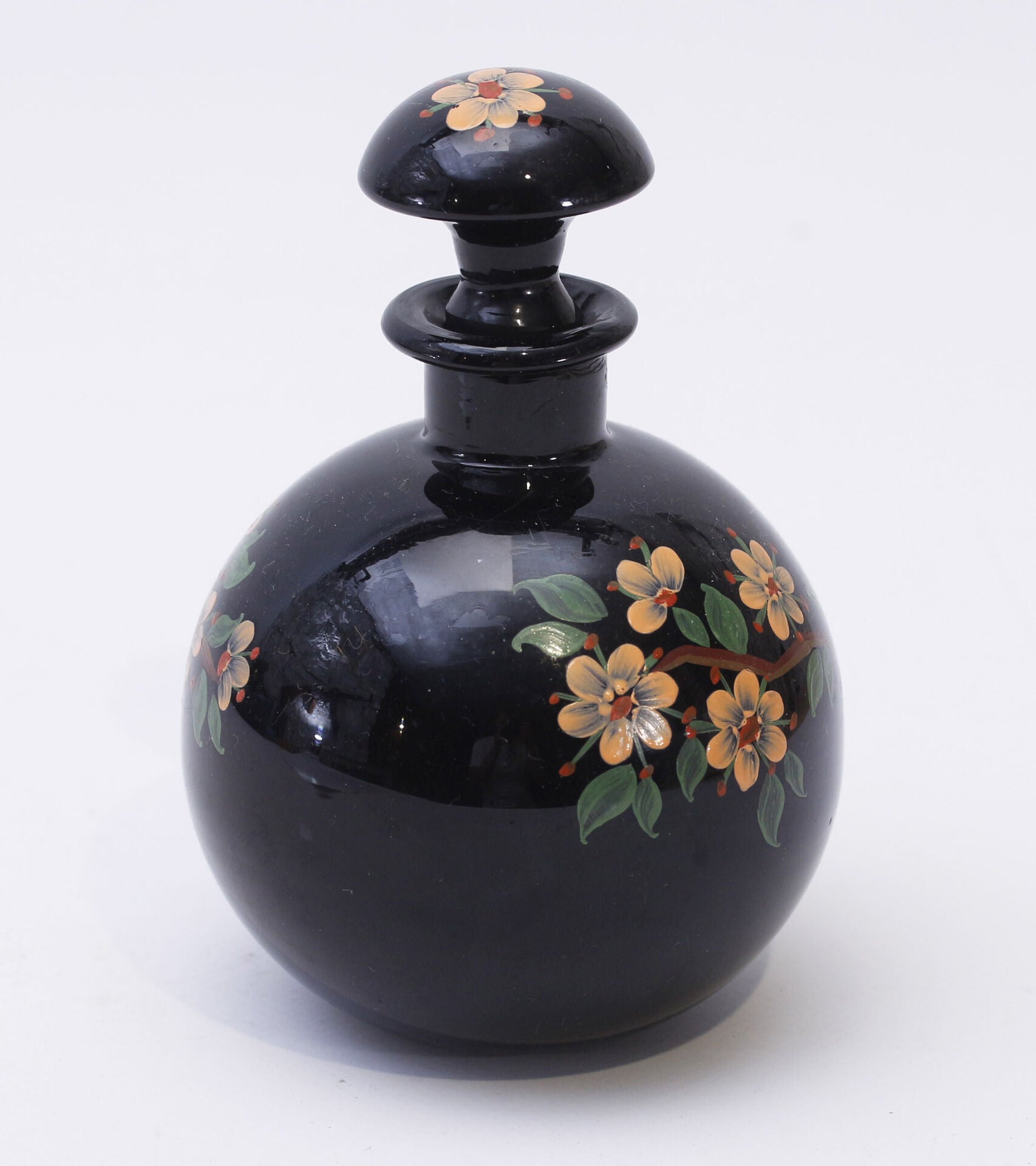 Dark glass carafe hand-painted at the Johannes Lorup's glass factory in 1920-30ies.