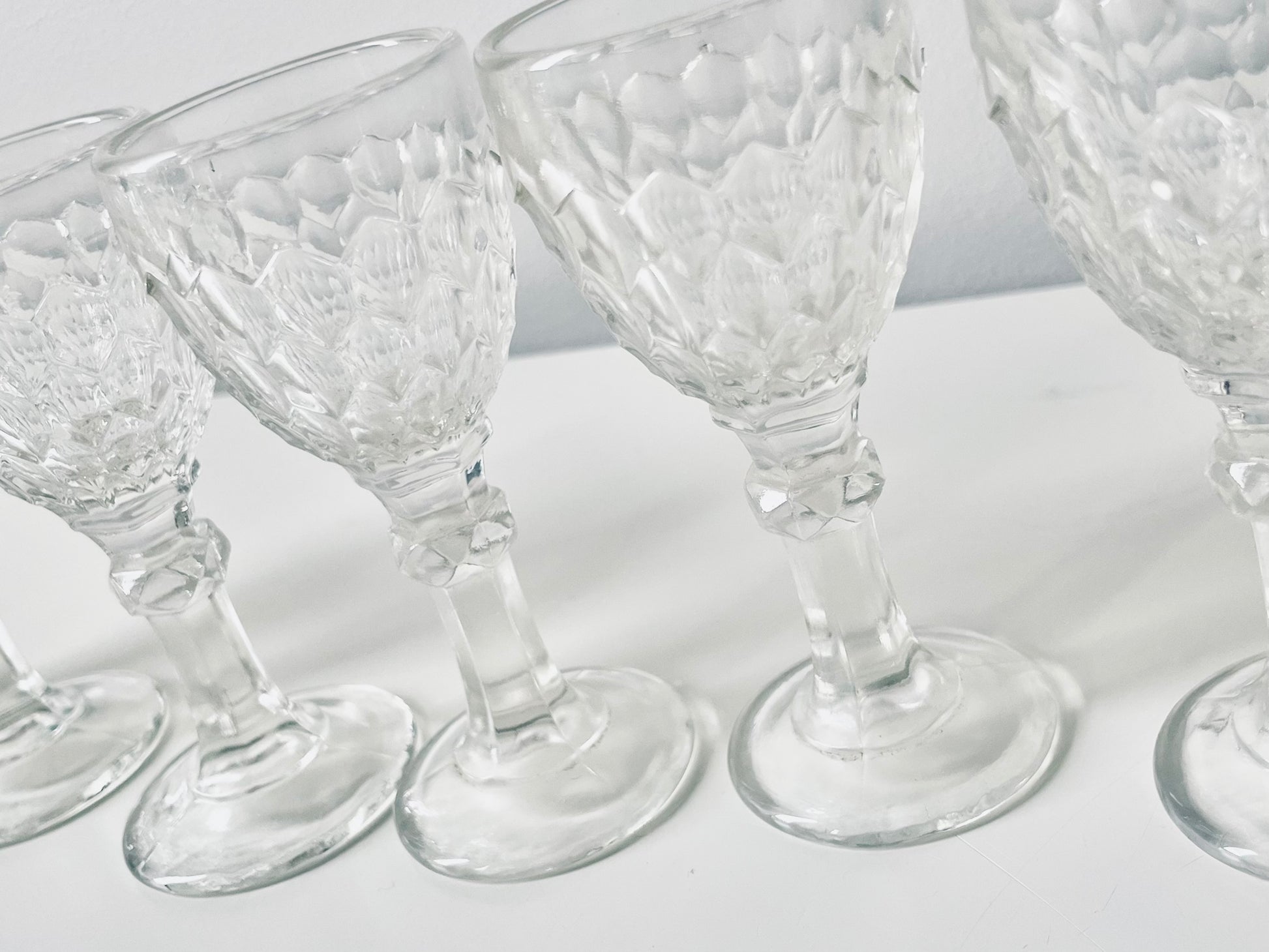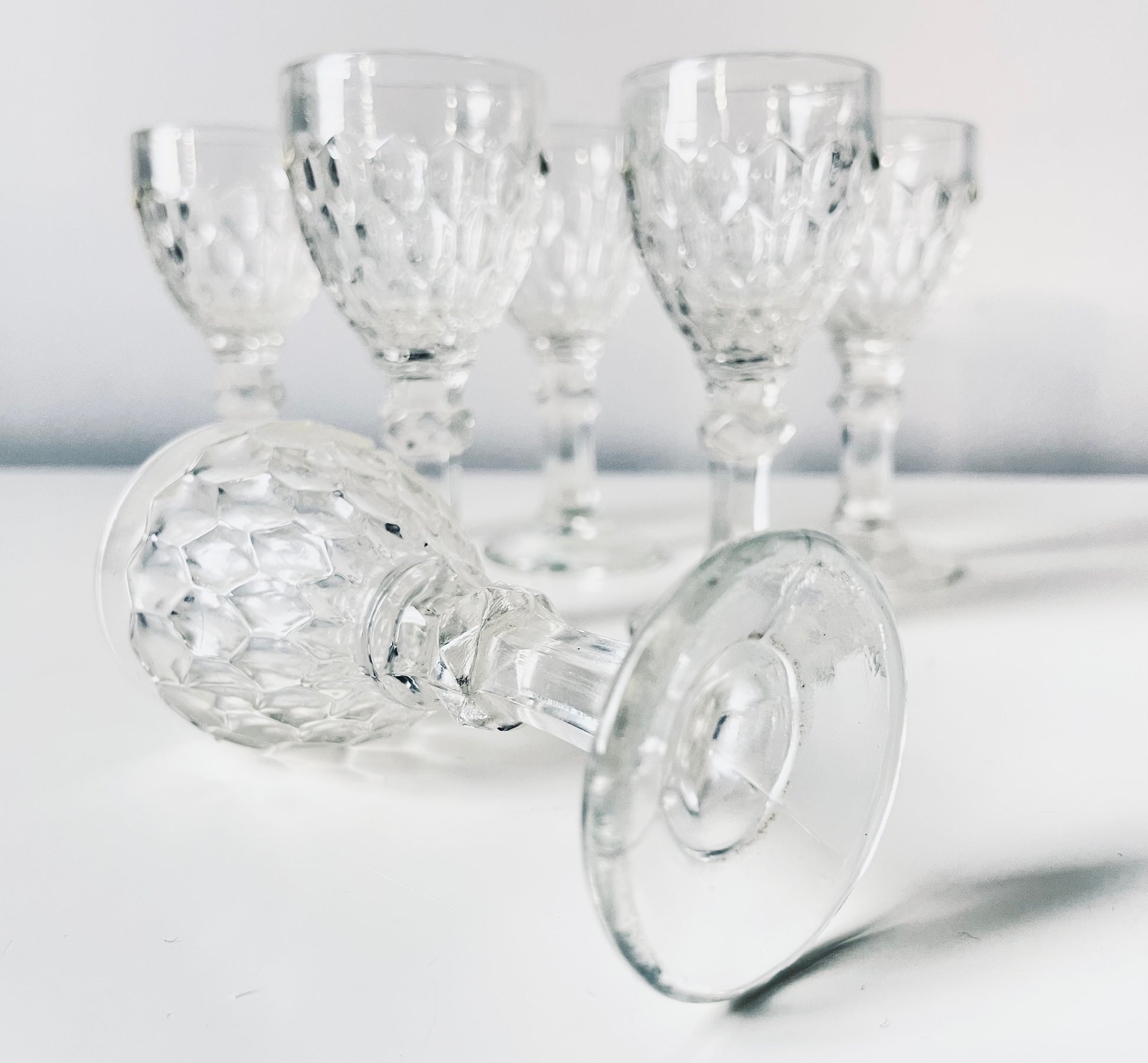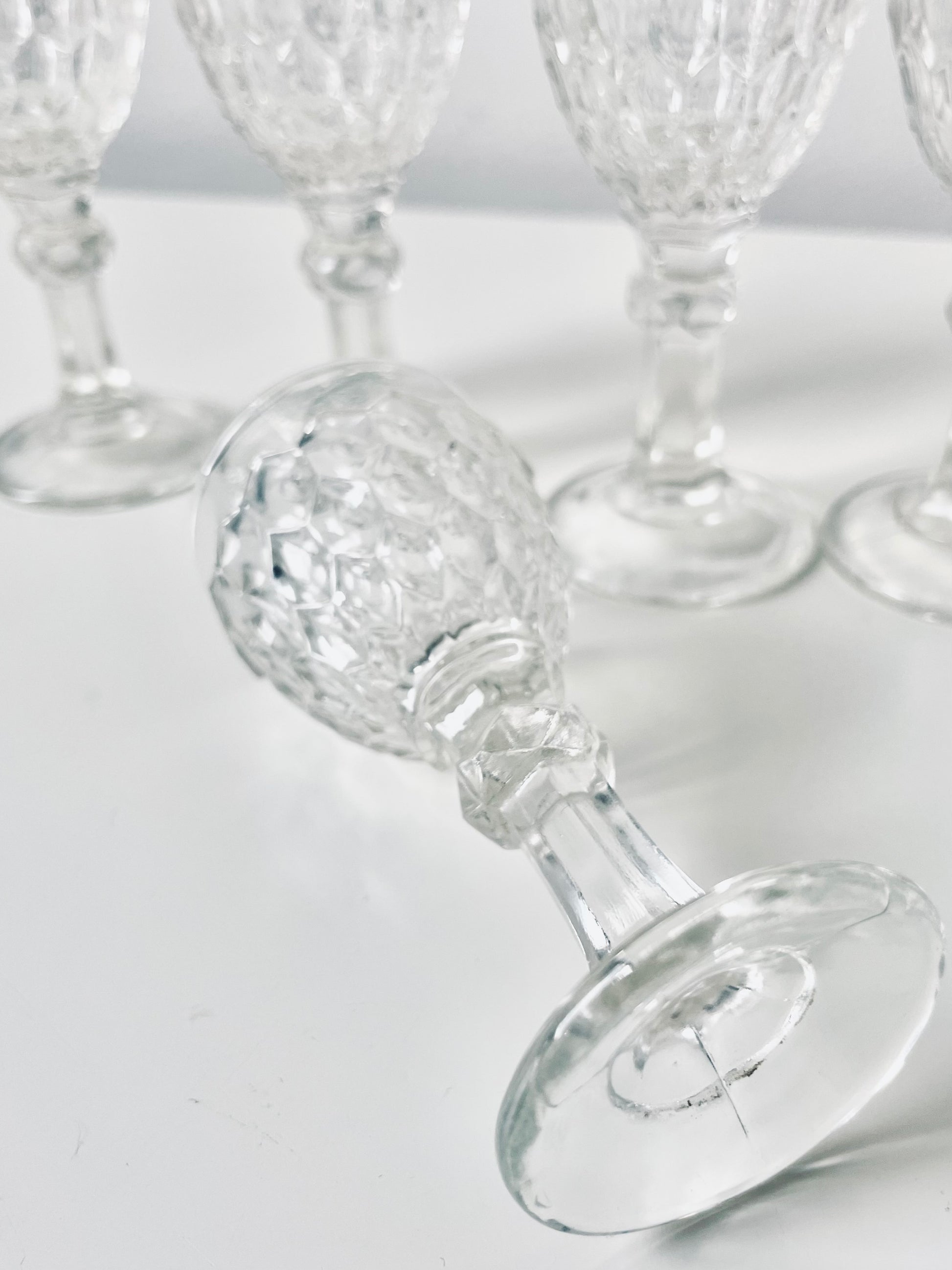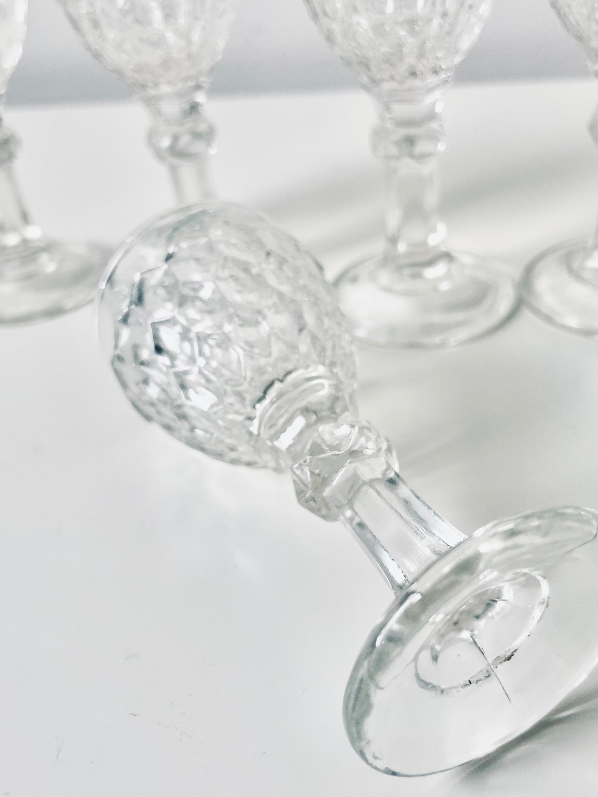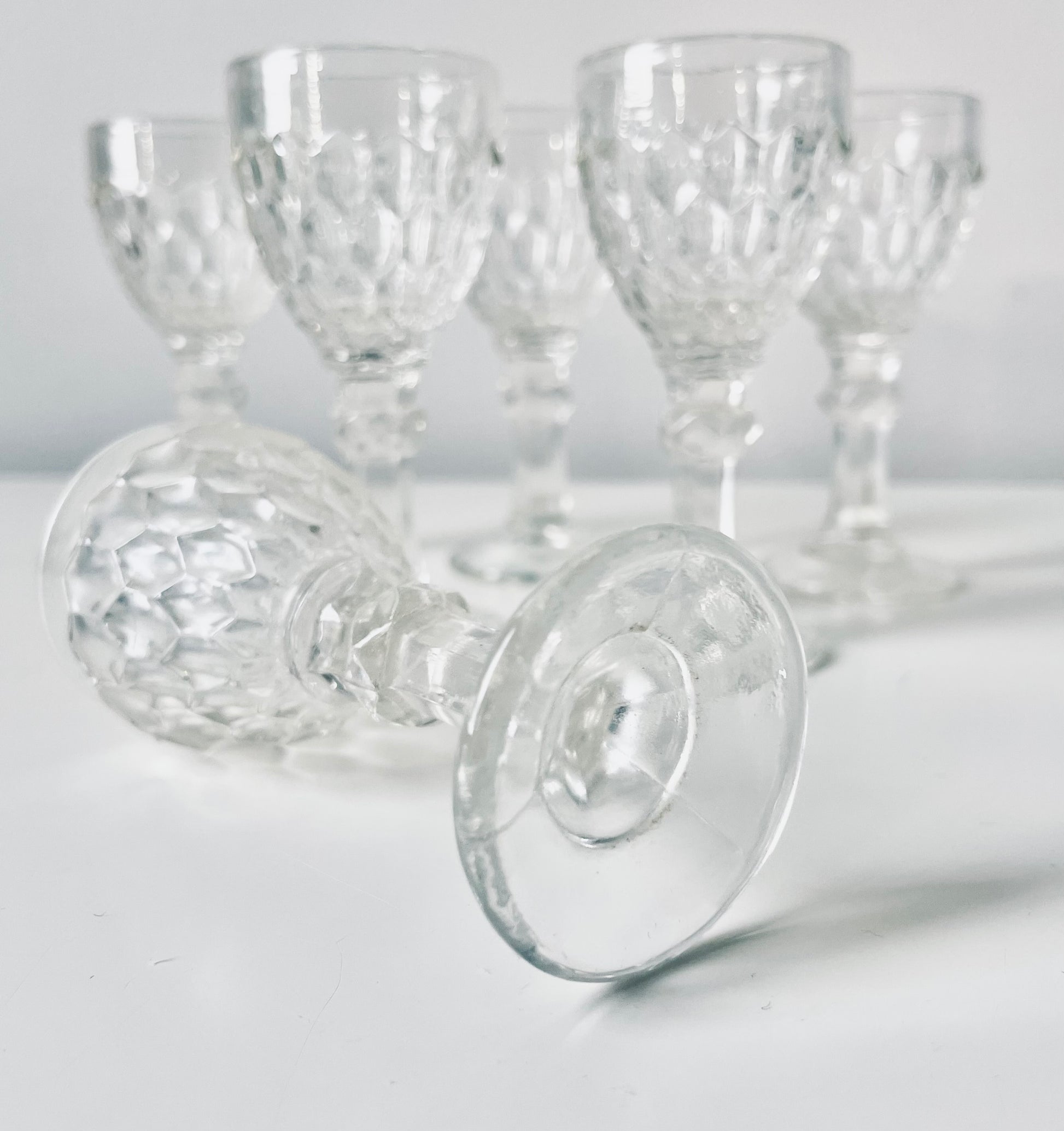 6 Lorup pressed glass liquor glasses.