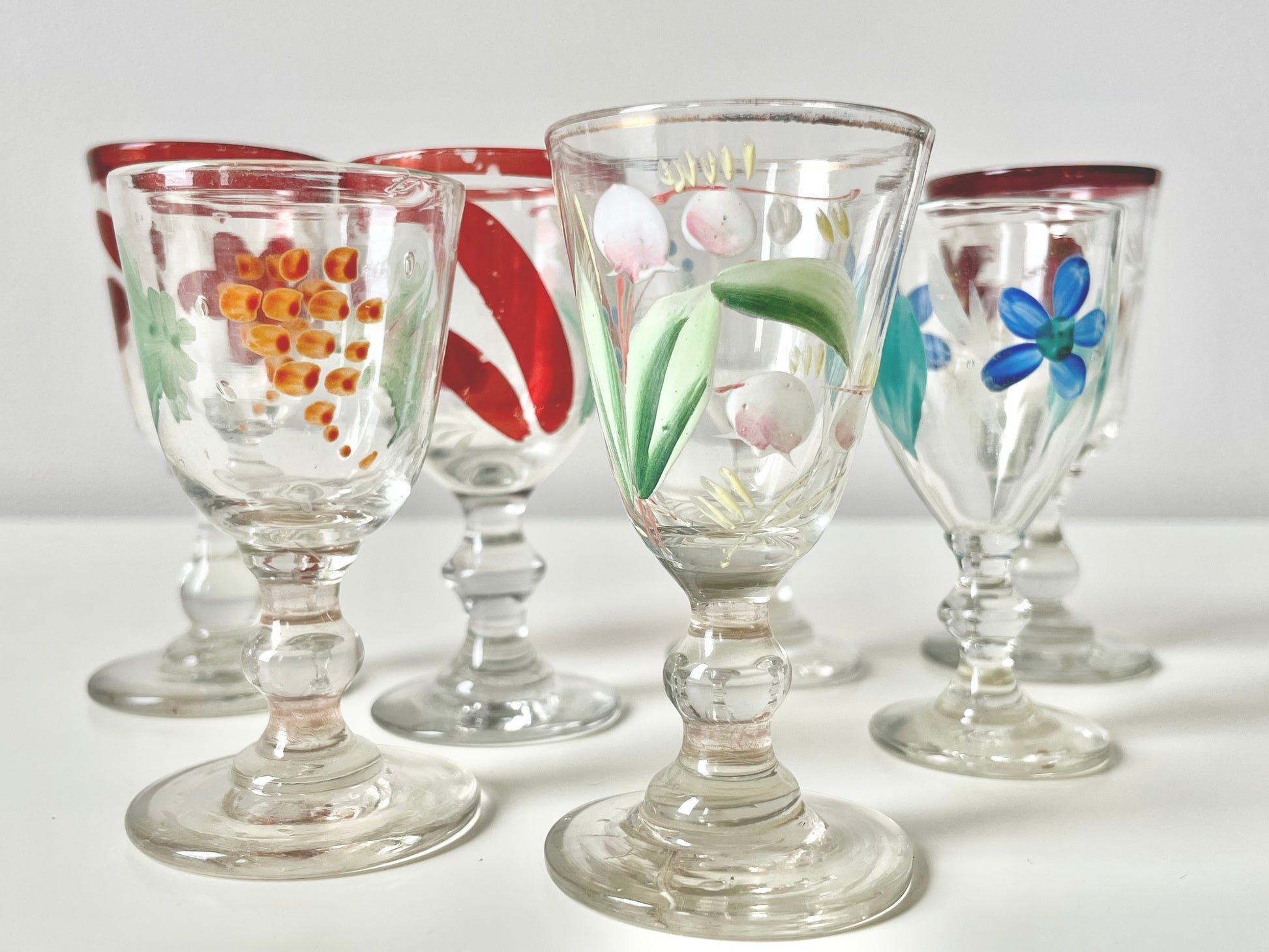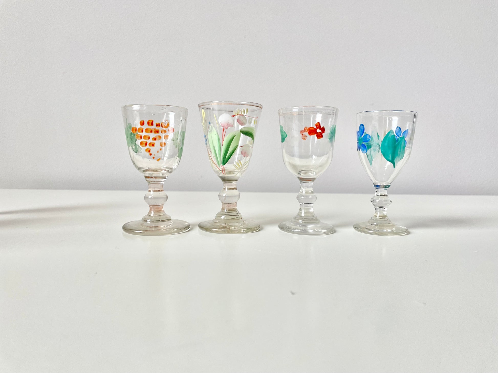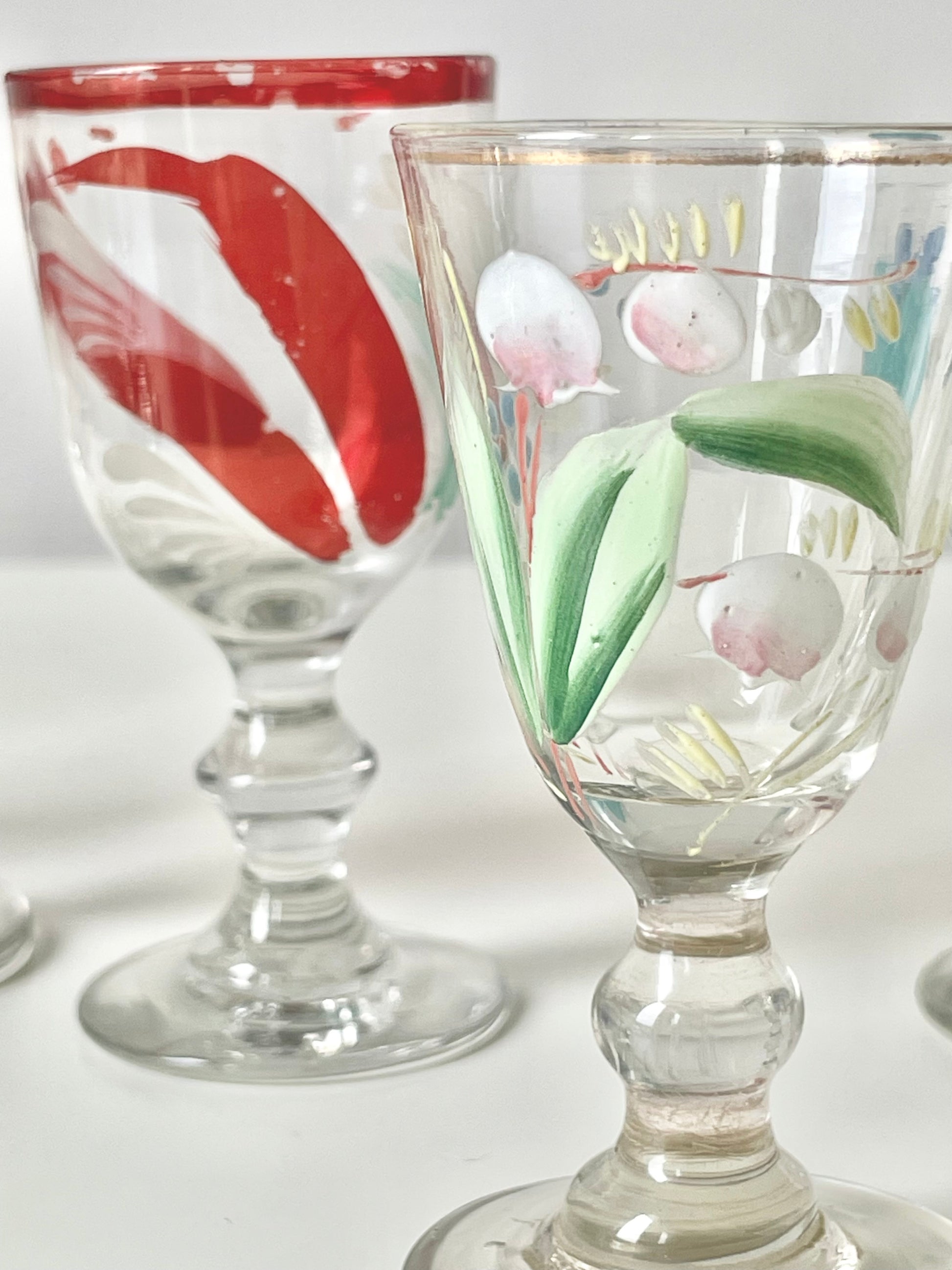 Handpainted vodka shot glasses produced in the Imperial Russia.
