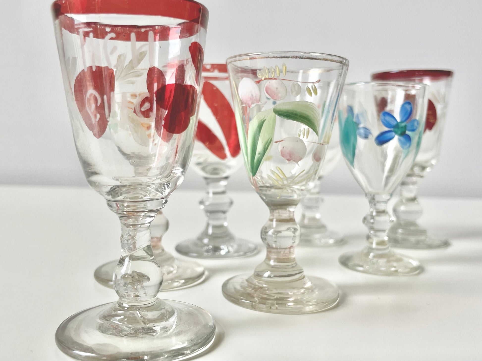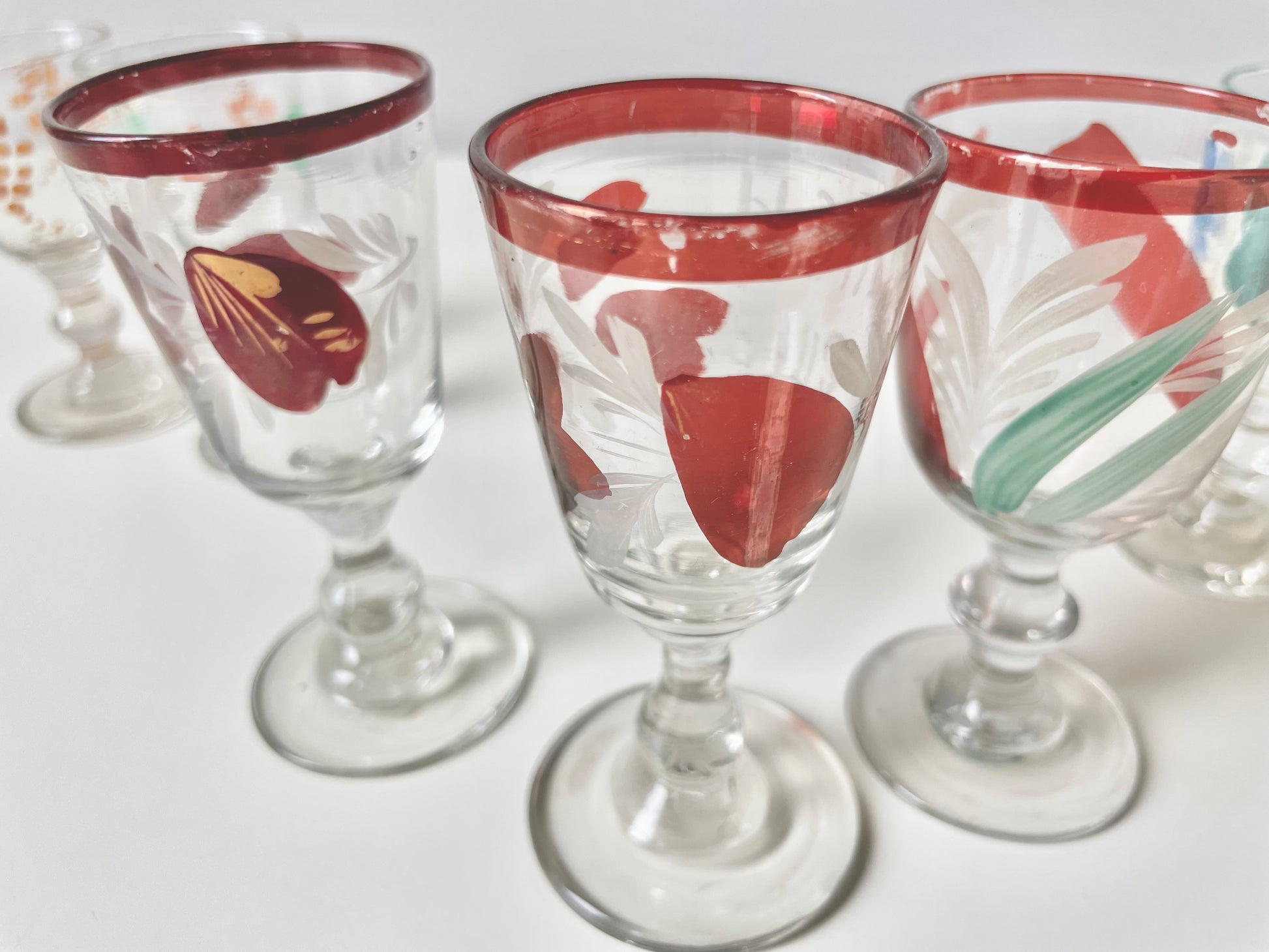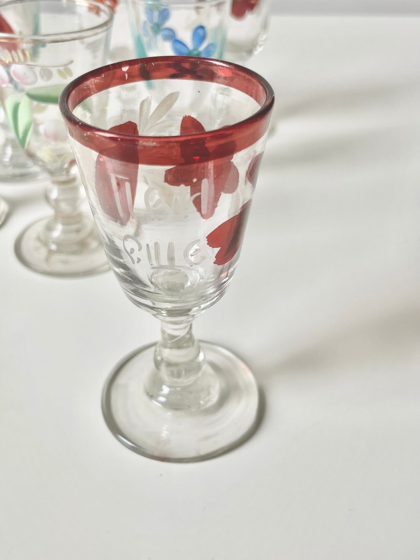 Handpainted vodka shot glasses produced in the Imperial Russia.