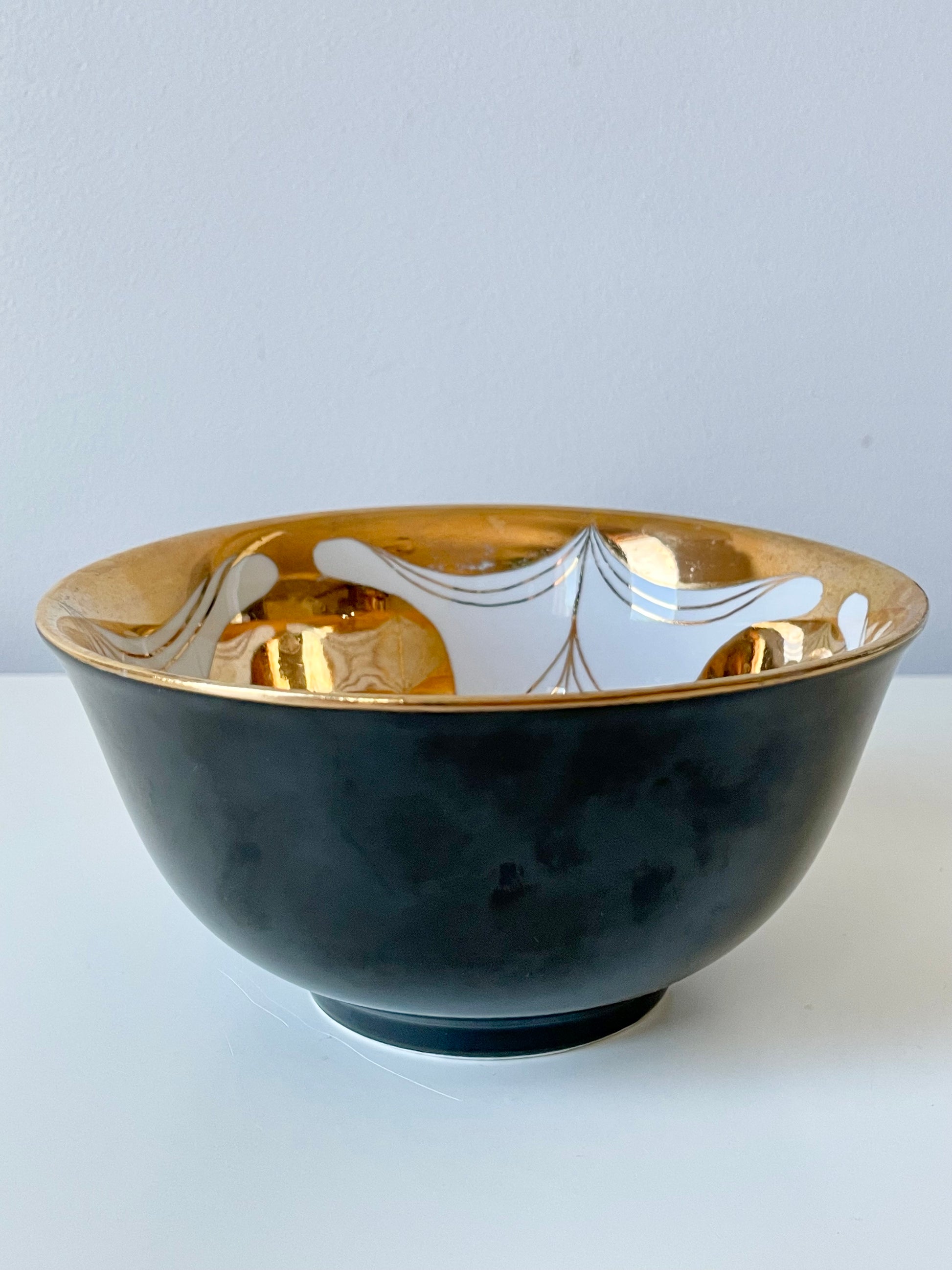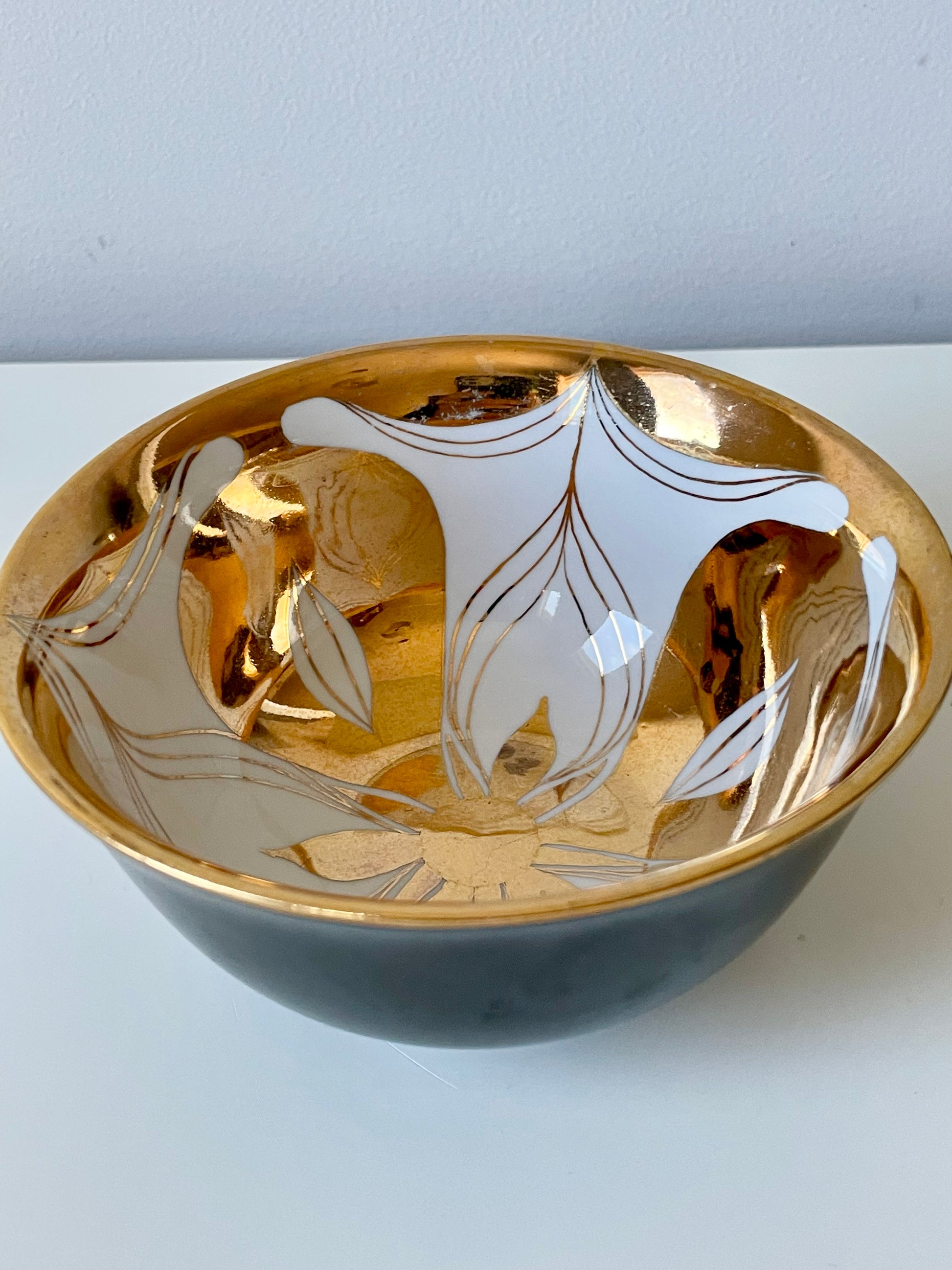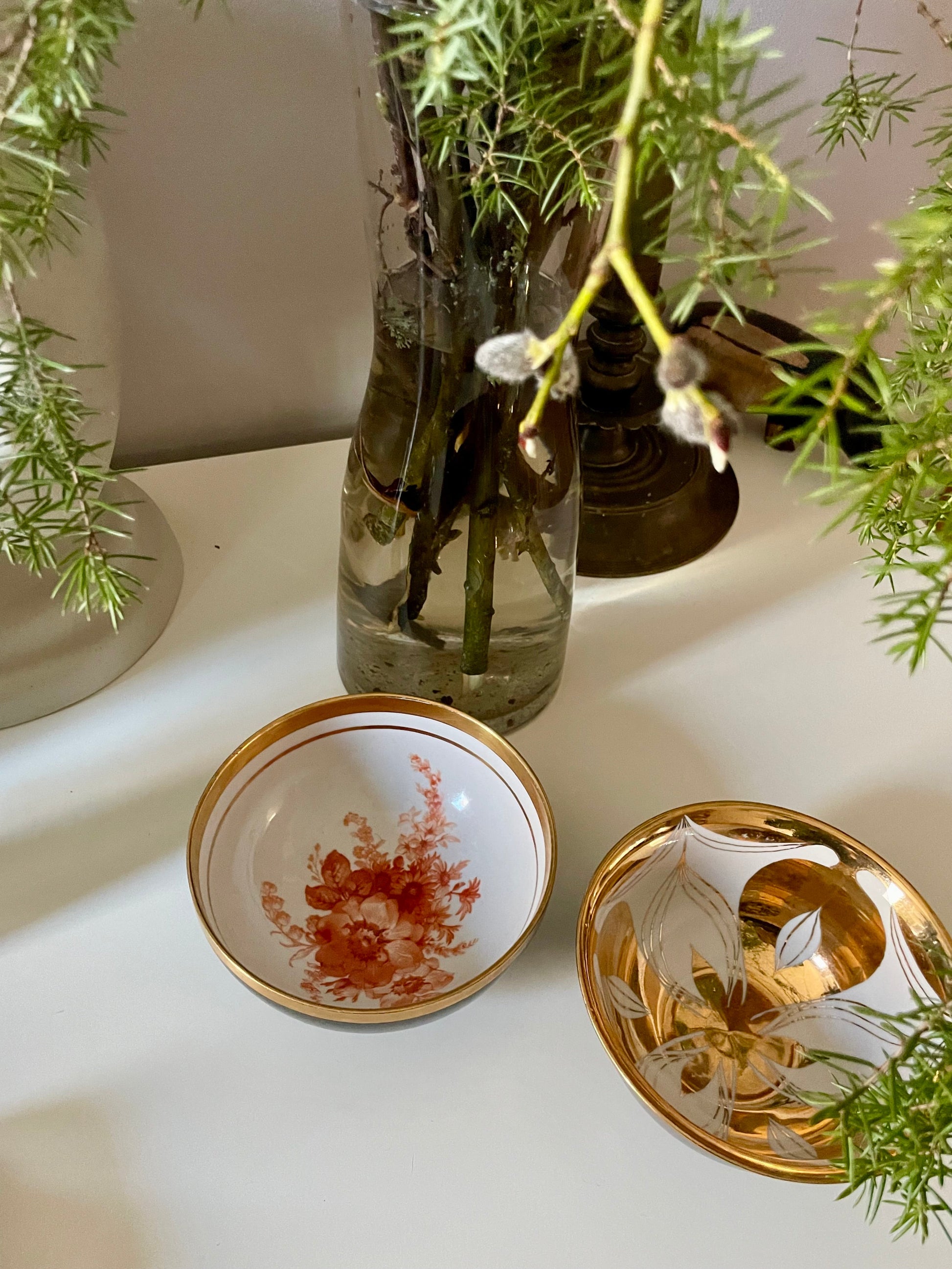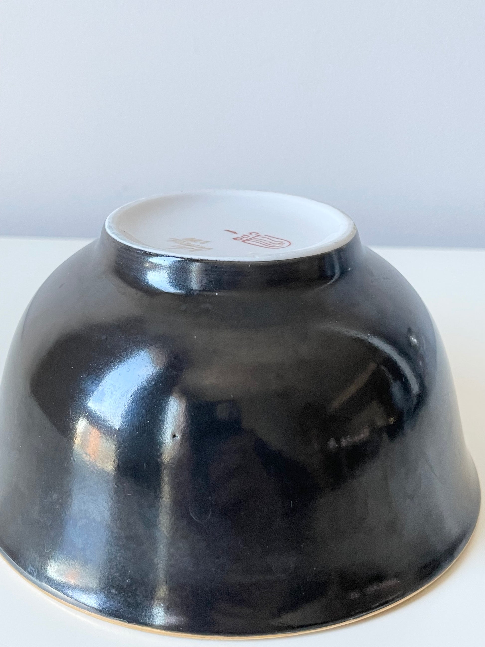Hand-painted (gilded) Riga Porcelain Factory’s bowl. Hallmark refers to the production period 1978. Item is marked as the first (=highest) quality grade, therefore the hallmark is red.