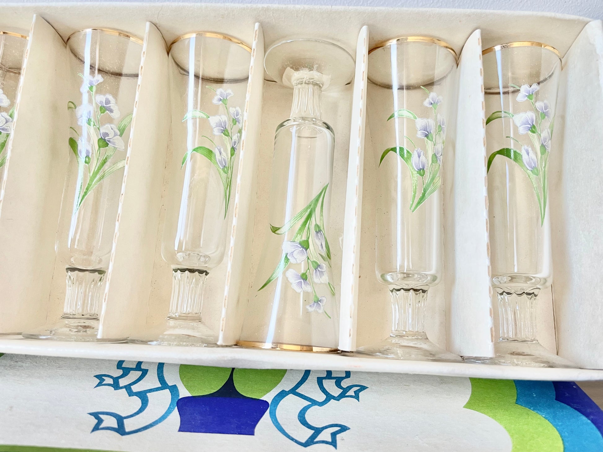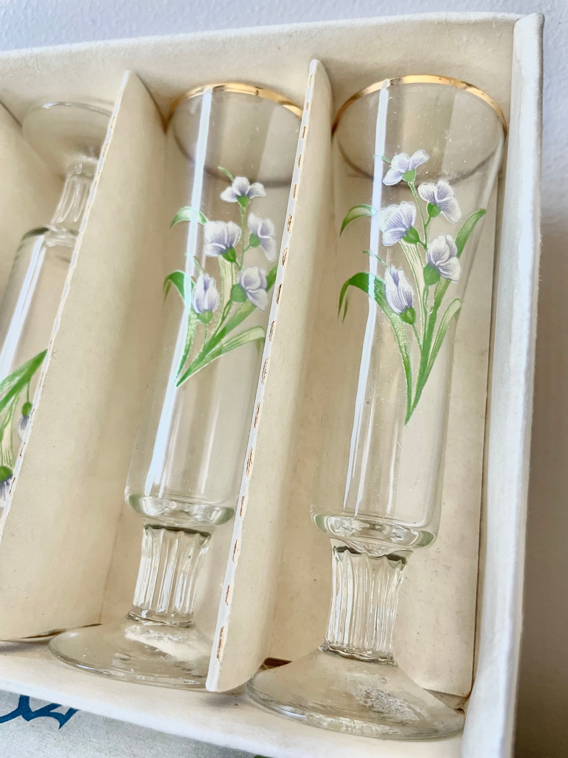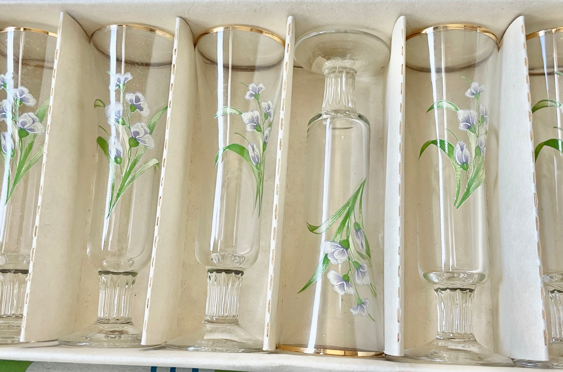 These shot/liqueur glasses with the tender flower decor will make any table setting to look humbly festive.