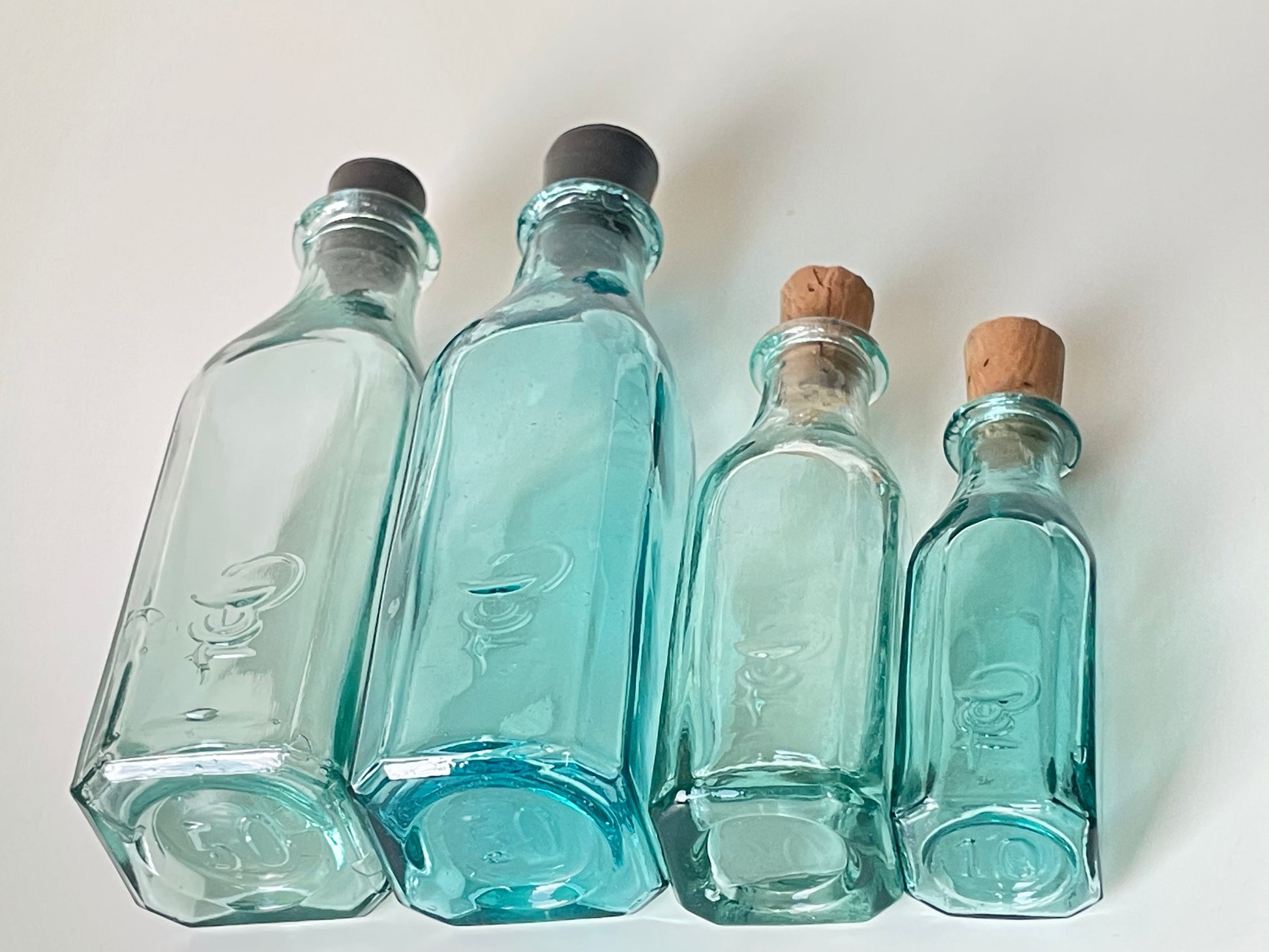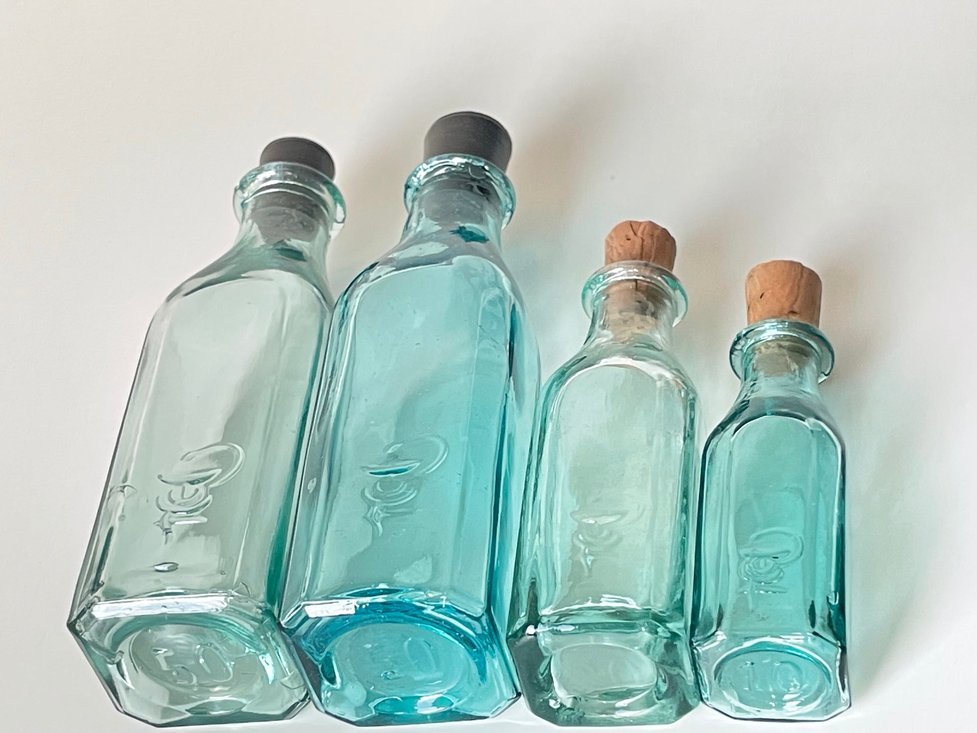 Decorative apothecary bottles with snake sign in the exceptional mint condition.