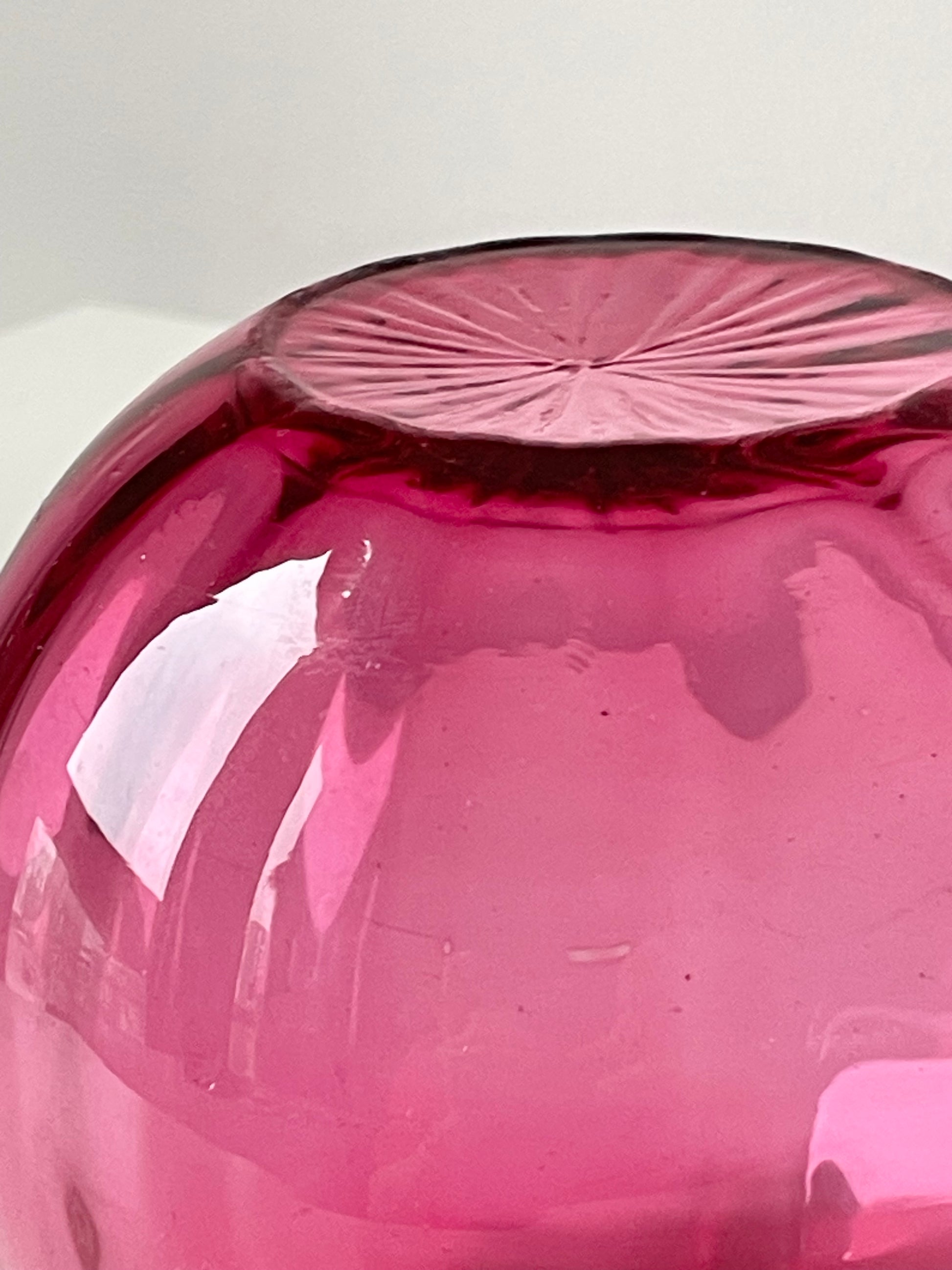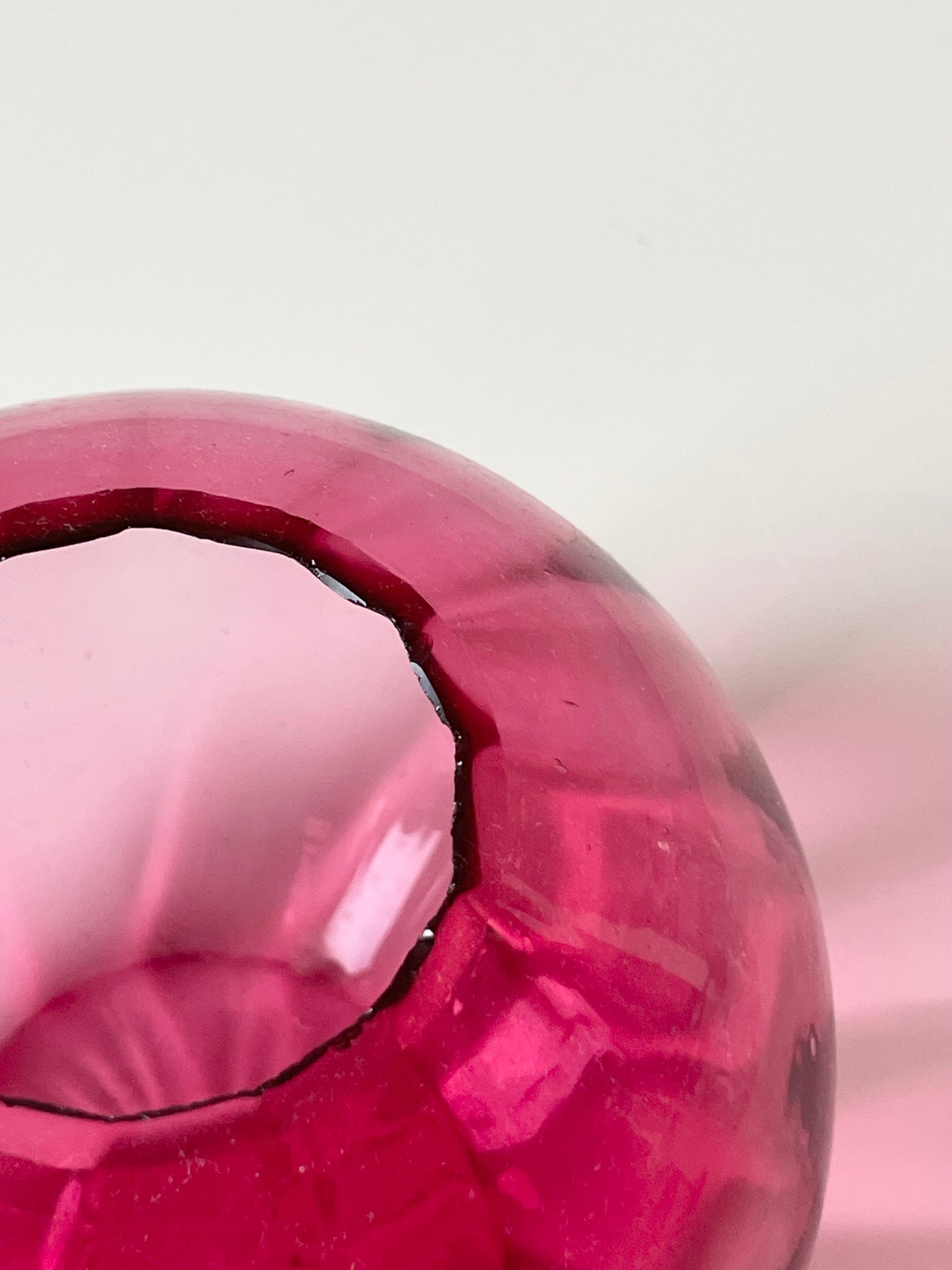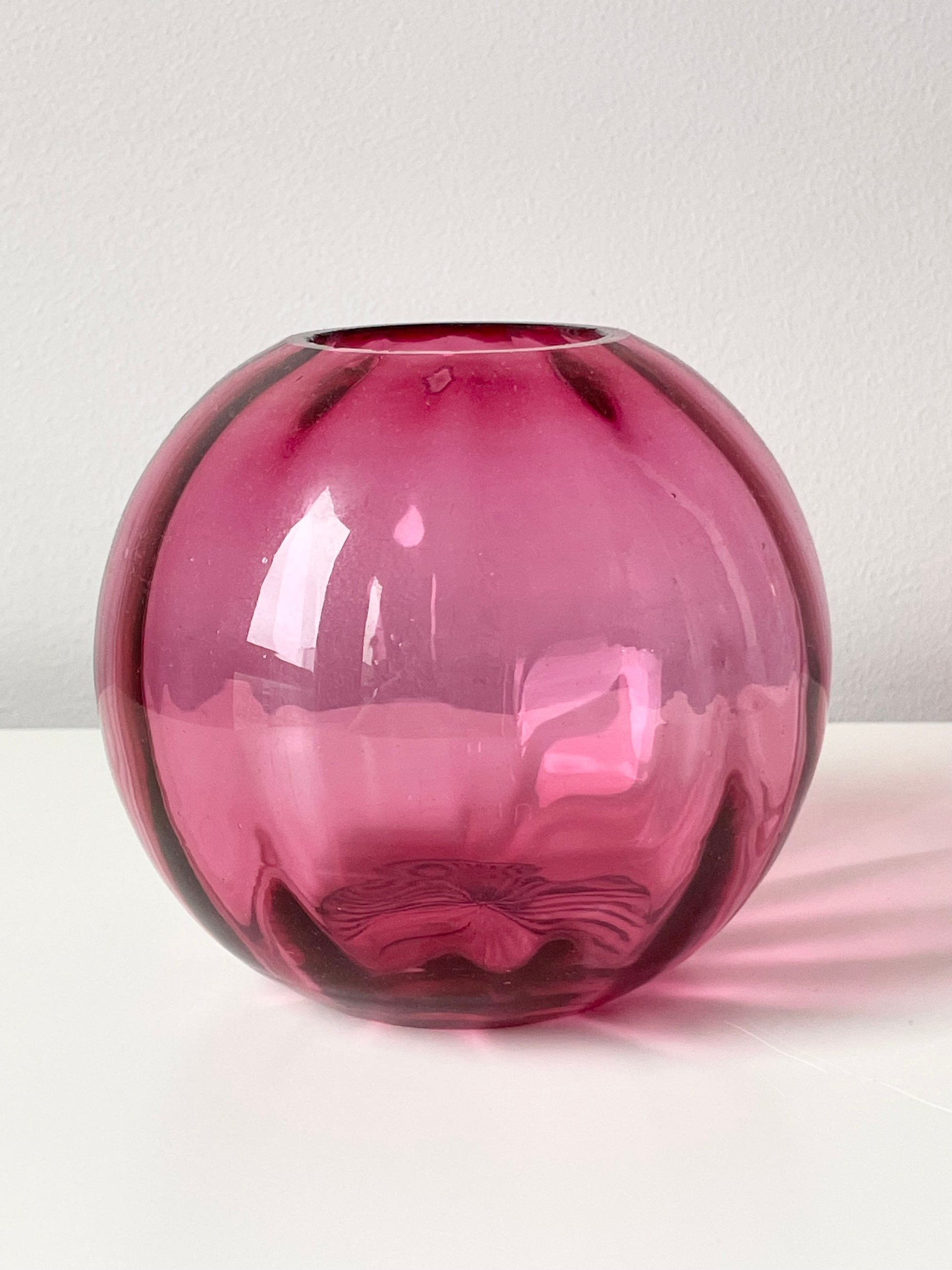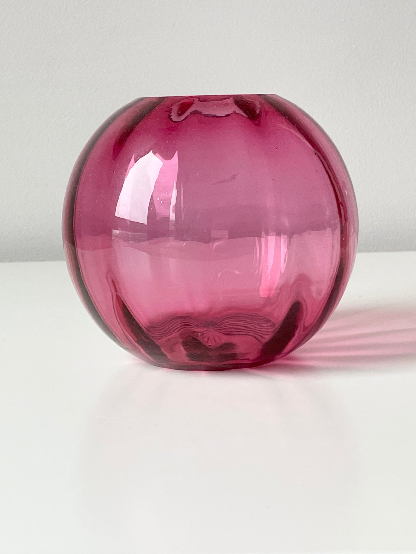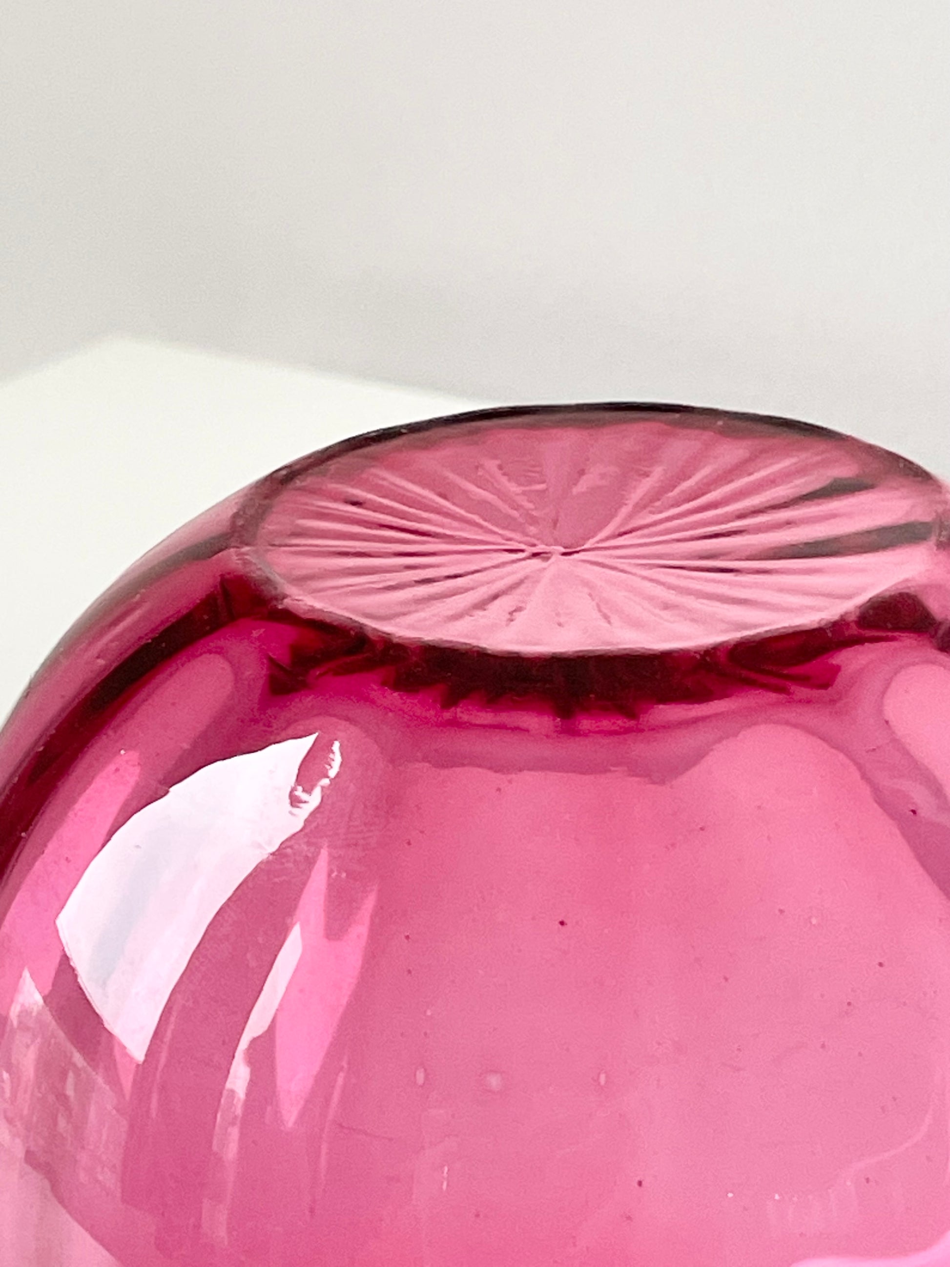 Bright pink glass smaller vase produced at the Johannes Lorup's glass factory in 1920-30ies.